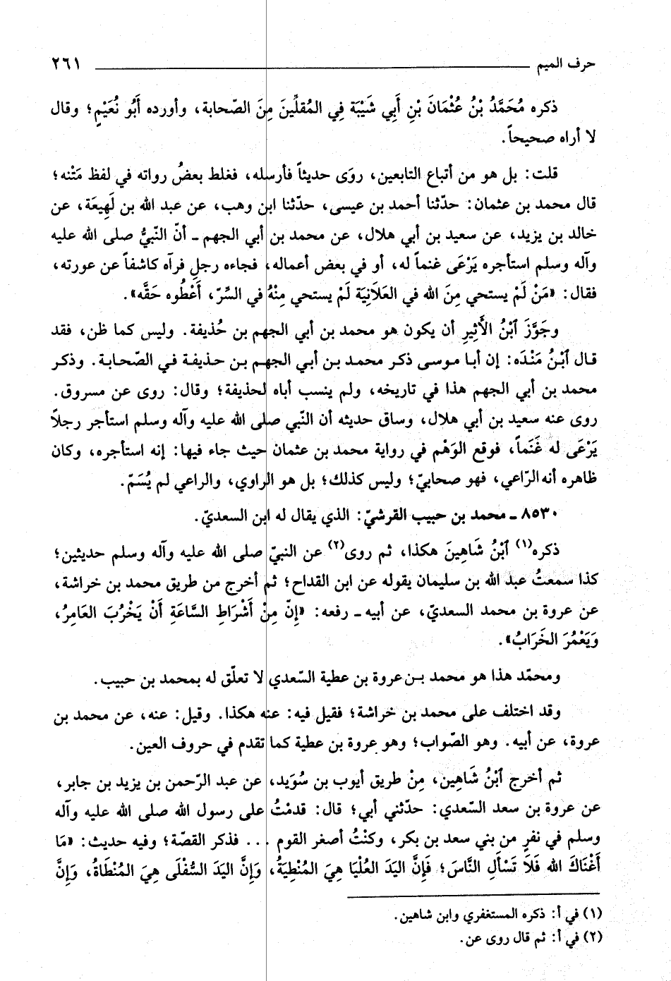 ومحمّد هذا هو محمد بن عروة بن عطية السّعديّ لا تعلّق له بمحمد بن حبيب.