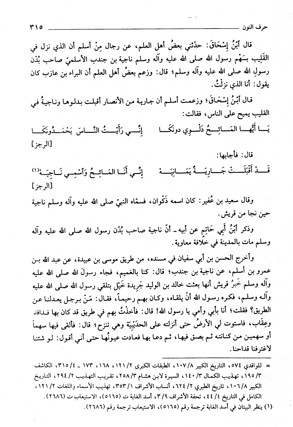 «١» [الرجز] وقال سعيد بن عفير: كان اسمه ذكوان، فسمّاه النبيّ صلى اللَّه عليه وآله وسلم ناجية حين نجا من قريش.