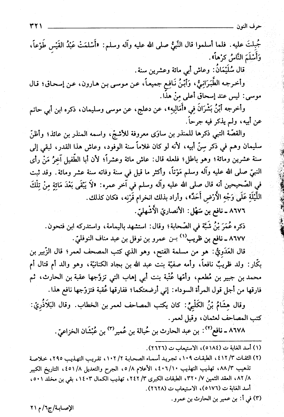 والقصّة التي ذكرها للمنذر بن ساوى معروفة للأشجّ، واسمه المنذر بن عائذ، وأظنّ سليمان وهم في ذكر سنّ أبيه، لأنه لو كان غلاما سنة الوفود، وعاش هذا القدر، لبقي إلى سنة عشرين ومائة، وهو باطل، فلعله قال: عاش مائة وعشرا، لأن أبا الطّفيل آخر من رأى النبيّ صلى اللَّه عليه وآله وسلم موتا، وأكثر ما قيل في سنة وفاته سنة عشر ومائة. وقد