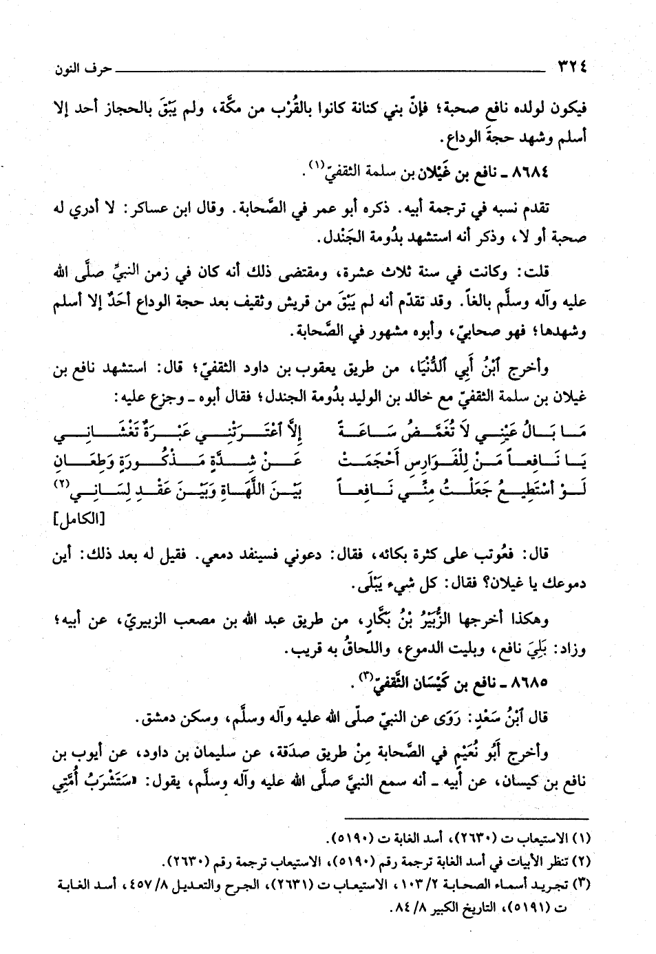 (٢) تنظر الأبيات في أسد الغابة ترجمة رقم (٥١٩٠) ، الاستيعاب ترجمة رقم (٢٦٣٠) .