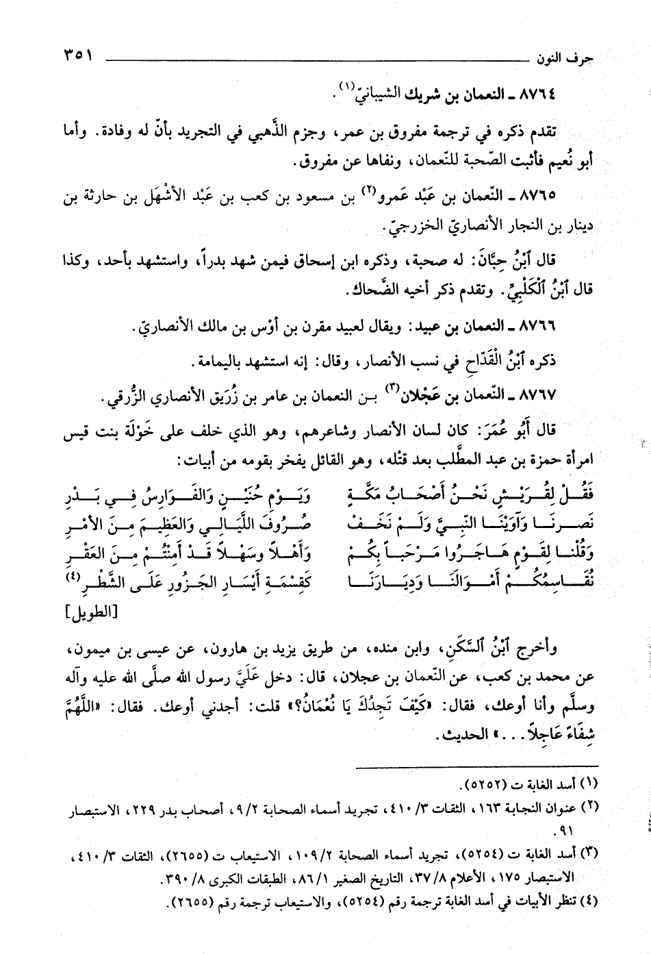 (٤) تنظر الأبيات في أسد الغابة ترجمة رقم (٥٢٥٤) ، والاستيعاب ترجمة رقم (٢٦٥٥) .