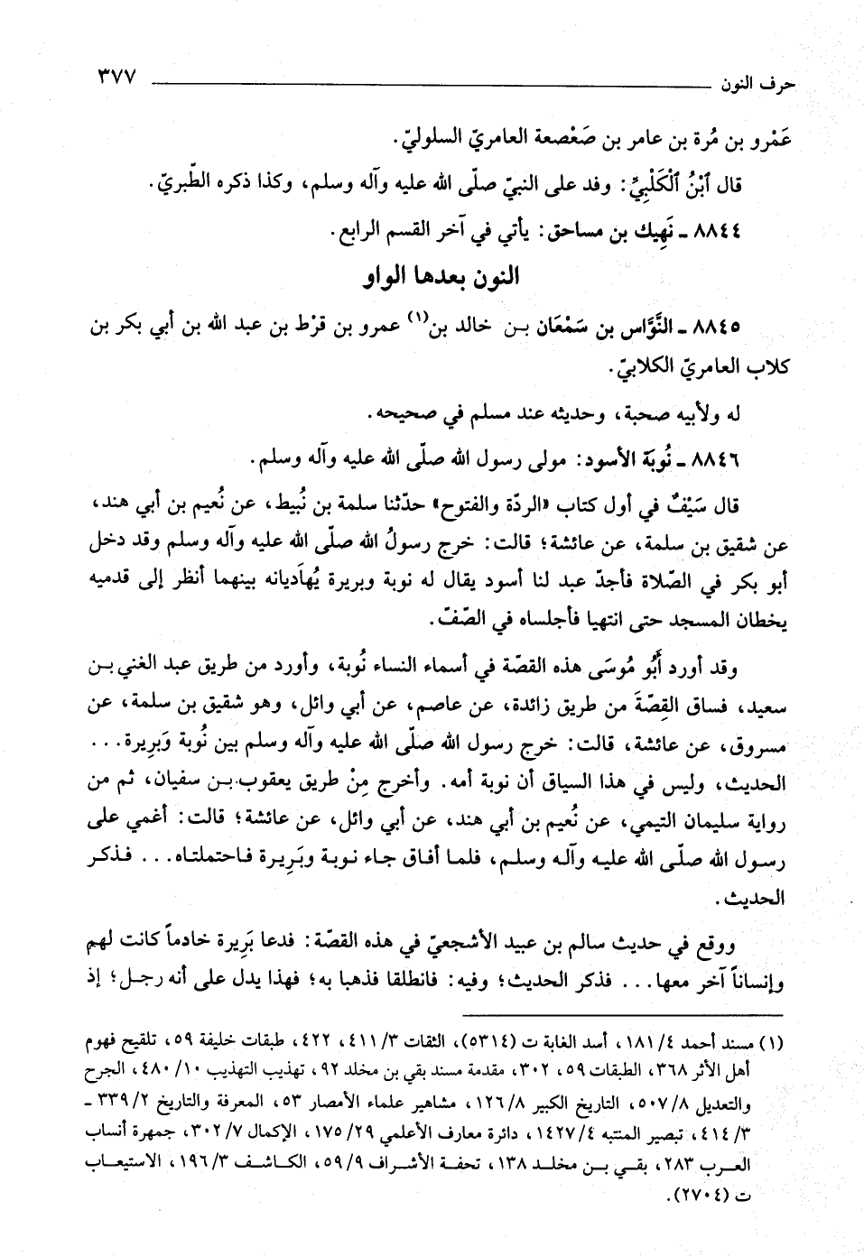وقد أورد أبو موسى هذه القصّة في أسماء النساء نوبة، وأورد من طريق عبد الغني بن سعيد، فساق القصّة من طريق زائدة، عن عاصم، عن أبي وائد، وهو شقيق بن سلمة، عن مسروق، عن عائشة، قالت: خرج رسول اللَّه صلّى اللَّه عليه وآله وسلّم بين نوبة وبريرة ...
