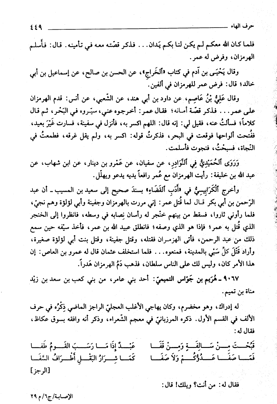 وروى الحميديّ في النّوادر، عن سفيان، عن عمرو بن دينار، عن ابن شهاب، عن عبد اللَّه بن خليفة: رأيت الهرمزان مع عمر رافعا يديه يدعو ويهلّل.