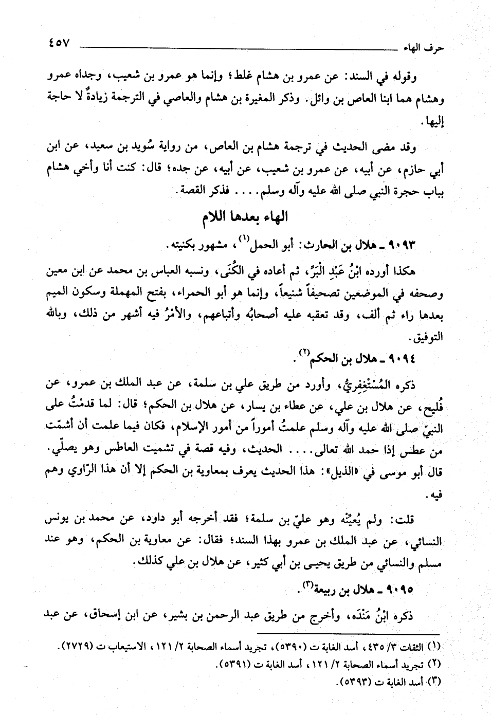 وقوله في السند: عن عمرو بن هشام غلط، وإنما هو عمرو بن شعيب، وجداه عمرو وهشام هما ابنا العاص بن وائل. وذكر المغيرة بن هشام والعاصي في الترجمة زيادة لا حاجة إليها.