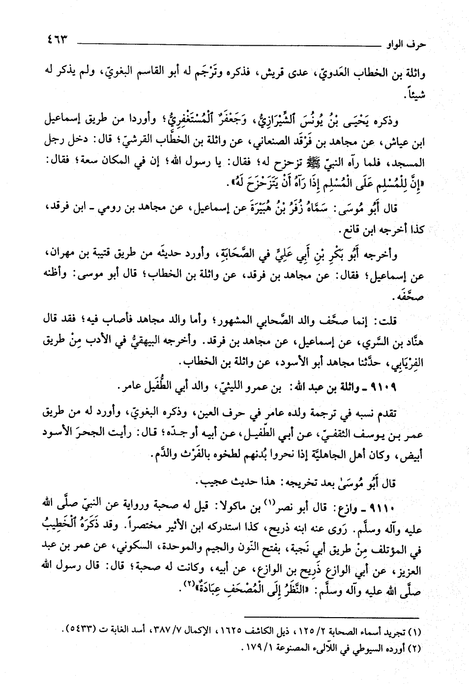 (١) تجريد أسماء الصحابة ٢/ ١٢٥، ذيل الكاشف ١٦٢٥، الإكمال ٧/ ٣٨٧، أسد الغابة ت (٥٤٣٣) .