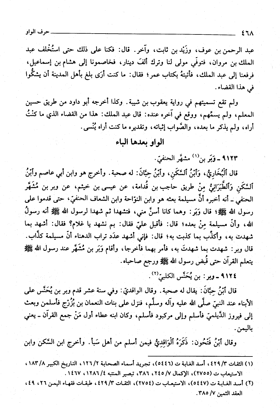 (١) الثقات ٣/ ٤٢٩، أسد الغابة ت (٥٤٤٦) ، تجريد أسماء الصحابة ٢/ ١٢٦، التاريخ الكبير ٨/ ١٨٣، الاستيعاب ت (٢٧٥٥) ، الإكمال ٧/ ٢٤٥، ٣٨٦، تبصير المنتبه ٤/ ١٢٨٦، ١٤٦٧.