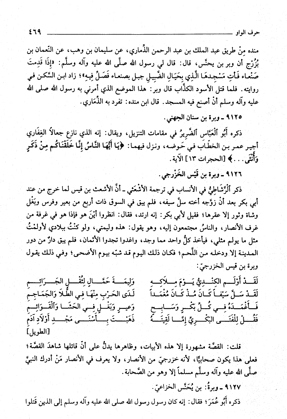 ٩١٢٦- وبرة بن قيس الخزرجي.