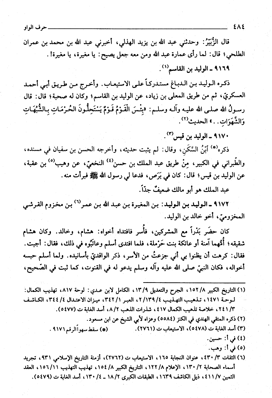 وأخرج من طريق أبي أحمد العسكريّ، ثم من طريق المعلى بن زياد، عن الوليد بن القاسم، وكان له صحبة، قال: قال رسول اللَّه صلى اللَّه عليه وآله وسلم: «بئس القوم قوم يستحلّون الحرمات بالشّبهات والشّهوات..» الحديث «٢» .