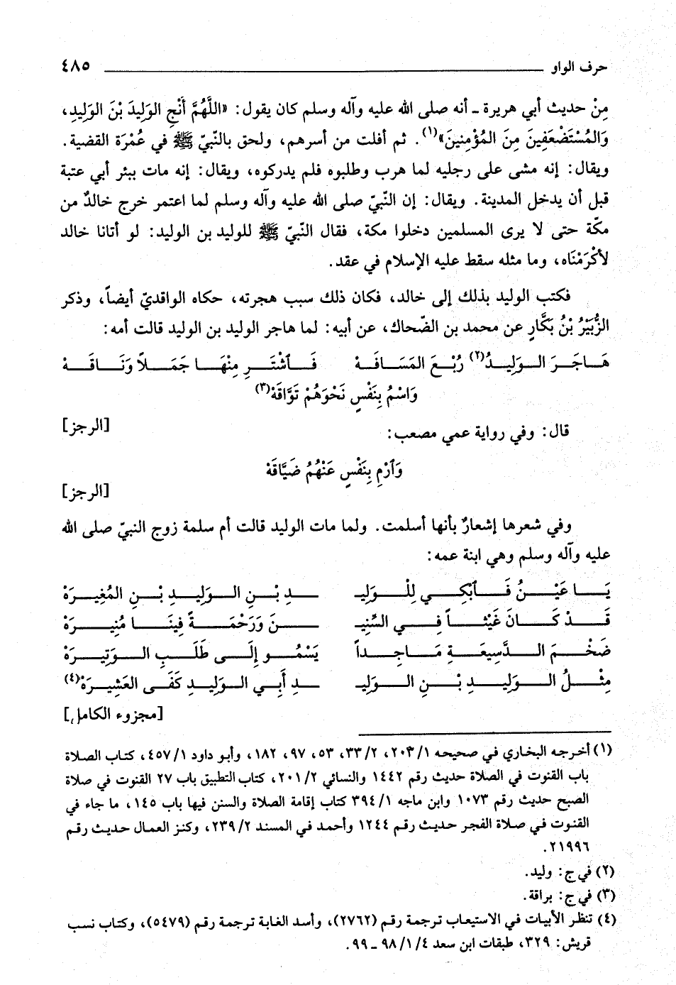 من حديث أبي هريرة- أنه صلى اللَّه عليه وآله وسلم كان يقول: «اللَّهمّ أنج الوليد بن الوليد، والمستضعفين من المؤمنين»