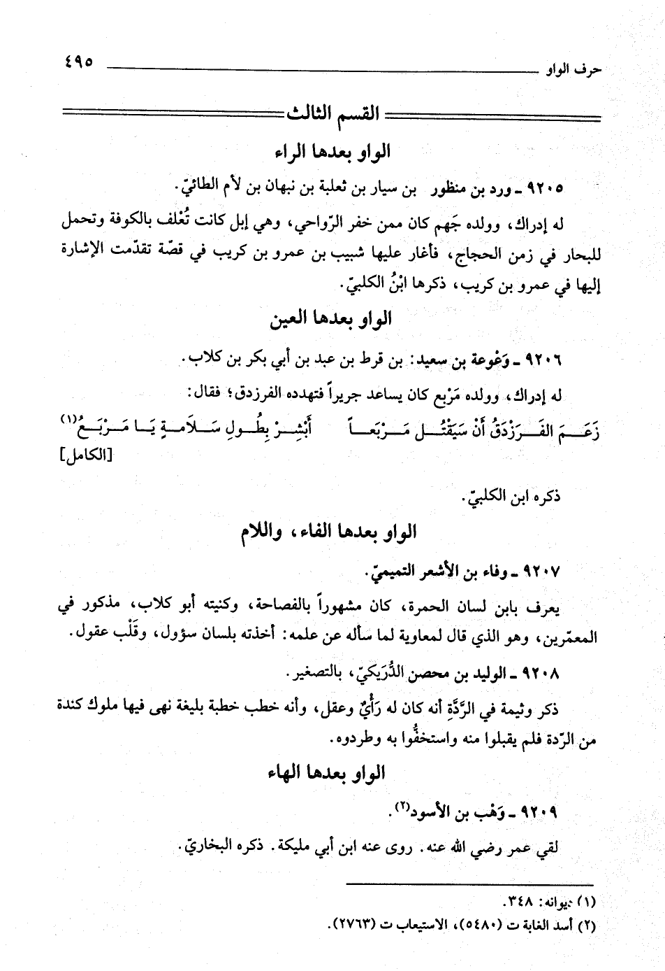 ٩٢٠٧- وفاء بن الأشعر التميميّ.