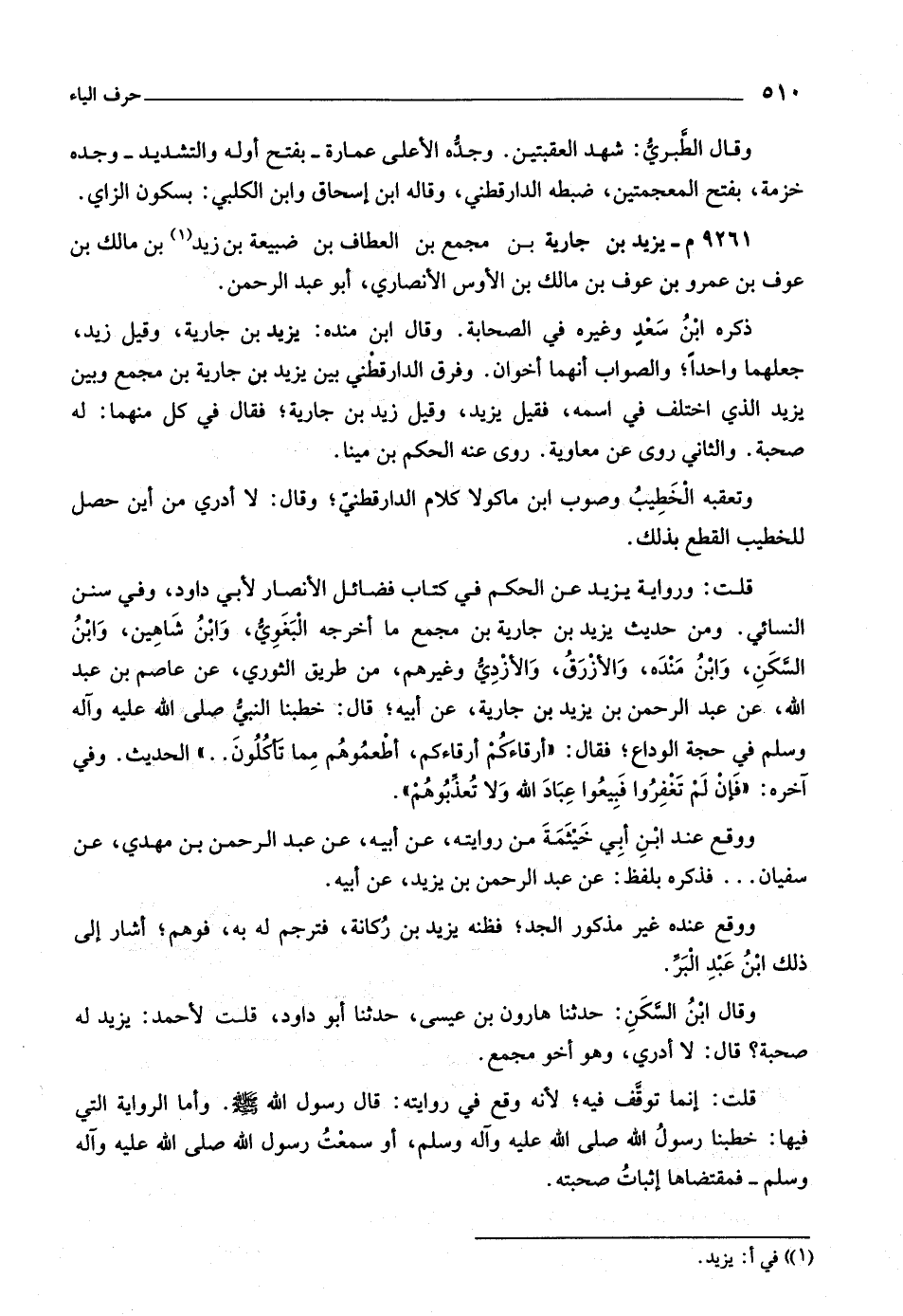 وقال ابن السّكن: حدثنا هارون بن عيسى، حدثنا أبو داود، قلت لأحمد: يزيد له صحبة؟ قال: لا أدري، وهو أخو مجمع.