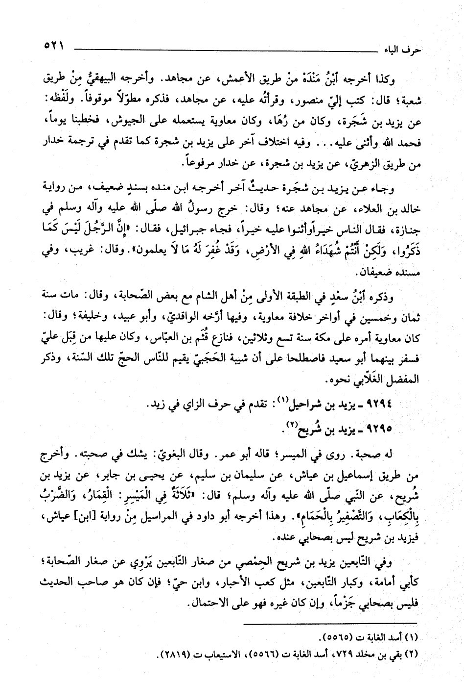 (٢) بقي بن مخلد ٧٢٩، أسد الغابة ت (٥٥٦٦) ، الاستيعاب ت (٢٨١٩) .