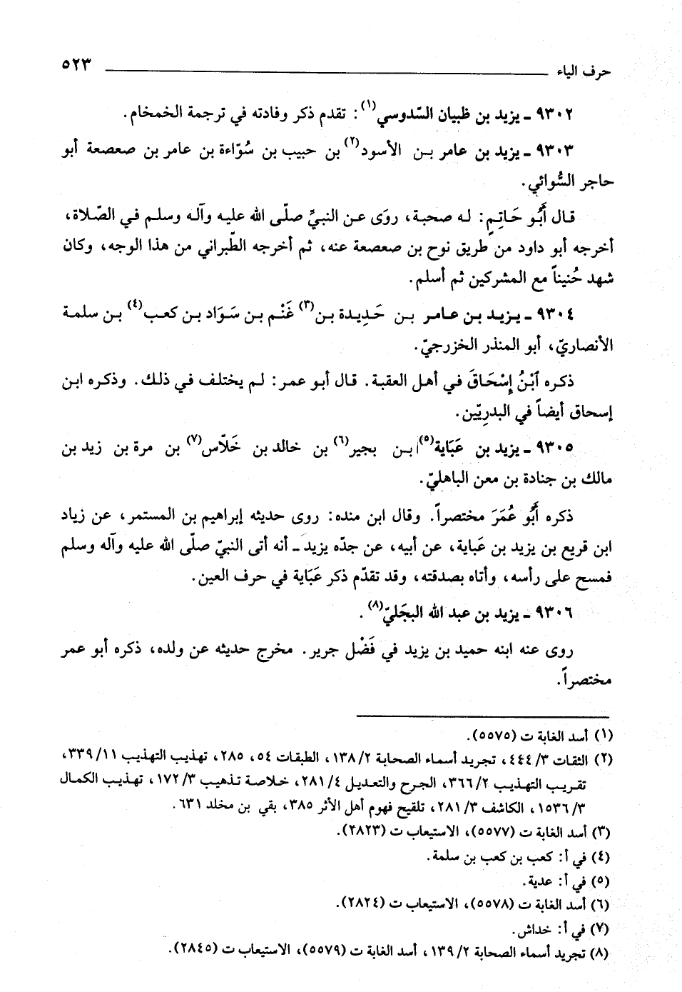 (٨) تجريد أسماء الصحابة ٢/ ١٣٩، أسد الغابة ت (٥٥٧٩) ، الاستيعاب ت (٢٨٤٥) .