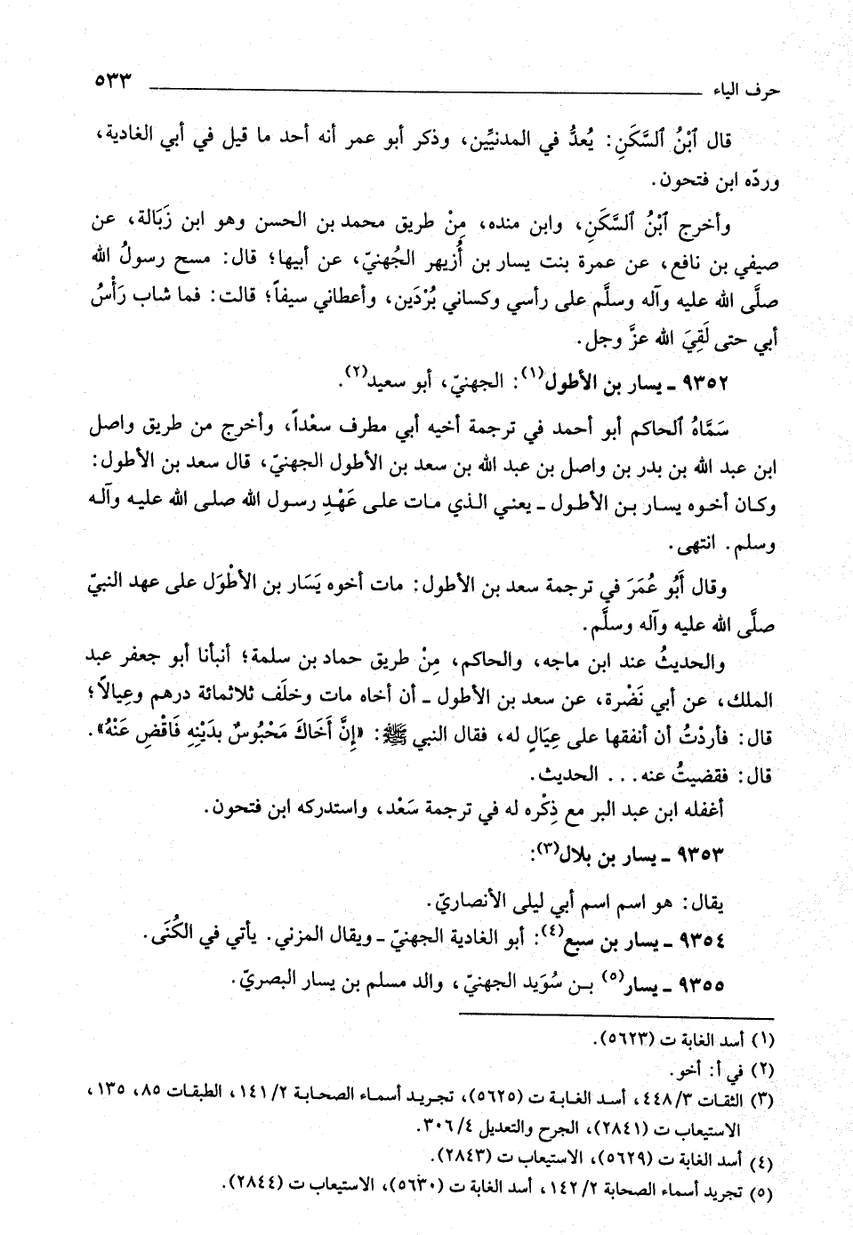 وقال أبو عمر في ترجمة سعد بن الأطول: مات أخوه يسار بن الأطول على عهد النبيّ صلّى اللَّه عليه وآله وسلّم.
