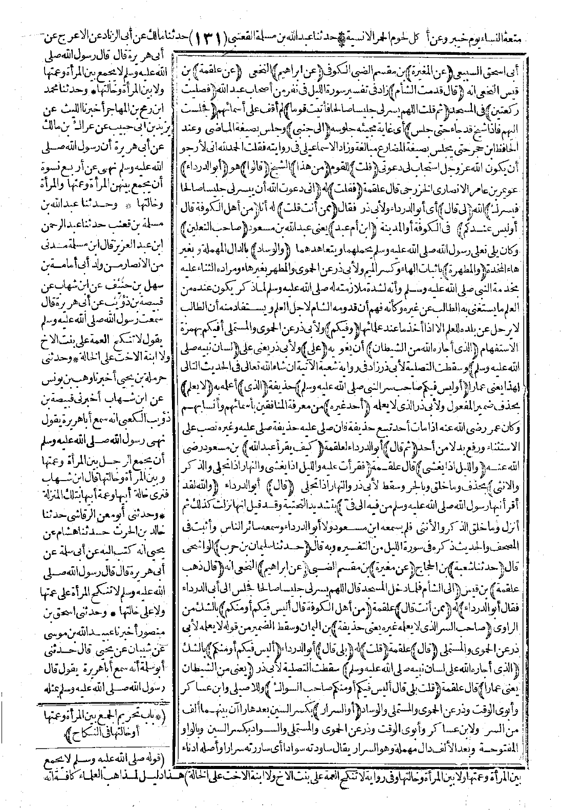 3743 - حَدَّثَنَا سُلَيْمَانُ بْنُ حَرْبٍ حَدَّثَنَا شُعْبَةُ عَنْ مُغِيرَةَ عَنْ إِبْرَاهِيمَ قَالَ: "ذَهَبَ عَلْقَمَةُ إِلَى الشَّامِ، فَلَمَّا دَخَلَ الْمَسْجِدَ قَالَ: اللَّهُمَّ يَسِّرْ لِي جَلِيسًا صَالِحًا. فَجَلَسَ إِلَى أَبِي الدَّرْدَاءِ، فَقَالَ: أَبُو الدَّرْدَاءِ: مِمَّنْ أَنْتَ؟ قَالَ؛ مِنْ أَهْلِ الْكُوفَةِ. قَالَ: أَلَيْسَ فِيكُمْ -أَوْ مِنْكُمْ- صَاحِبُ السِّرِّ الَّذِي لاَ يَعْلَمُهُ غَيْرُهُ؟ يَعْنِي حُذَيْفَةَ. قَالَ: قُلْتُ بَلَى. قَالَ: أَلَيْسَ فِيكُمُ -أَوْ مِنْكُمُ- الَّذِي أَجَارَهُ اللَّهُ عَلَى لِسَانِ نَبِيِّهِ -صَلَّى اللَّهُ عَلَيْهِ وَسَلَّمَ-؟ يَعْنِي مِنَ الشَّيْطَانِ، يَعْنِي عَمَّارًا، قُلْتُ: بَلَى. قَالَ: أَلَيْسَ فِيكُمْ -أَوْ مِنْكُمْ- صَاحِبُ السِّوَاكِ، والوسَادِ أَوِ السِّرَارِ؟ قَالَ: بَلَى. قَالَ: كَيْفَ كَانَ عَبْدُ اللَّهِ يَقْرَأُ {وَاللَّيْلِ إِذَا يَغْشَى * وَالنَّهَارِ إِذَا تَجَلَّى} [الليل: 1]؟ قُلْتُ: {وَالذَّكَرِ وَالأُنْثَى} [الليل: 3]، قَالَ: مَا زَالَ بِي هَؤُلاَءِ حَتَّى كَادُوا يَسْتَنْزِلُونِي عَنْ شَىْءٍ سَمِعْتُهُ مِنْ النبيِّ -صَلَّى اللَّهُ عَلَيْهِ وَسَلَّمَ-".