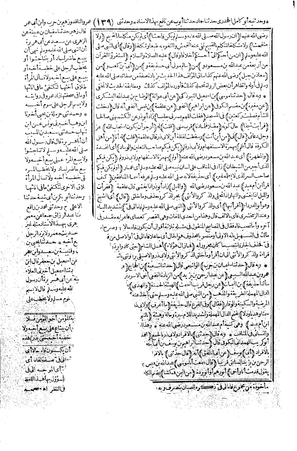 3763 - حَدَّثَنِي مُحَمَّدُ بْنُ الْعَلاَءِ حَدَّثَنَا إِبْرَاهِيمُ بْنُ يُوسُفَ بْنِ أَبِي إِسْحَاقَ قَالَ: حَدَّثَنِي أَبِي عَنْ أَبِي إِسْحَاقَ قَالَ: حَدَّثَنِي الأَسْوَدُ بْنُ يَزِيدَ قَالَ: سَمِعْتُ أَبَا مُوسَى الأَشْعَرِيَّ -رضي الله عنه- يَقُولُ: "قَدِمْتُ أَنَا وَأَخِي مِنَ الْيَمَنِ، فَمَكُثْنَا حِينًا مَا نُرَى إِلاَّ أَنَّ عَبْدَ اللَّهِ بْنَ مَسْعُودٍ رَجُلٌ مِنْ أَهْلِ بَيْتِ النَّبِيِّ -صَلَّى اللَّهُ عَلَيْهِ وَسَلَّمَ-، لِمَا نَرَى مِنْ دُخُولِهِ وَدُخُولِ أُمِّهِ عَلَى النَّبِيِّ -صَلَّى اللَّهُ عَلَيْهِ وَسَلَّمَ-". [الحديث 3763 - طرفه في: 4384].