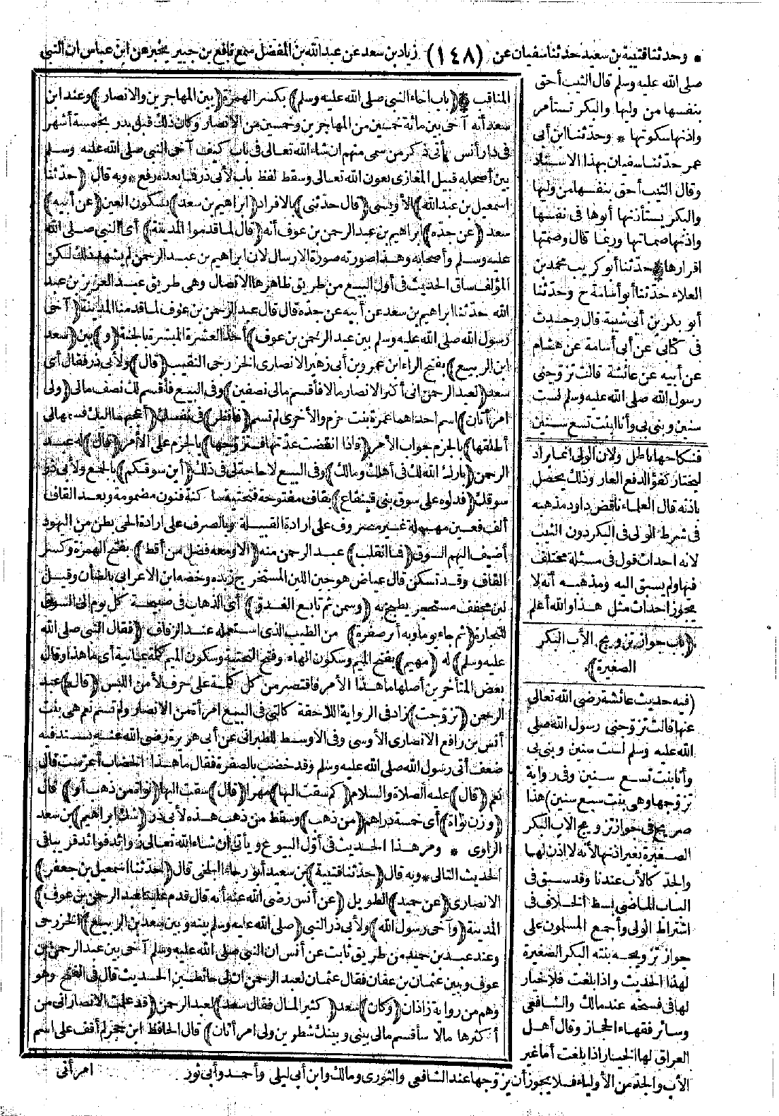 3780 - حَدَّثَنَا إِسْمَاعِيلُ بْنُ عَبْدِ اللَّهِ قَالَ: حَدَّثَنِي إِبْرَاهِيمُ بْنُ سَعْدٍ عَنْ أَبِيهِ عَنْ جَدِّهِ قَالَ: «لَمَّا قَدِمُوا الْمَدِينَةَ آخَى رَسُولُ اللَّهِ -صَلَّى اللَّهُ عَلَيْهِ وَسَلَّمَ- بَيْنَ عَبْدِ الرَّحْمَنِ وَسَعْدِ بْنِ الرَّبِيعِ. قَالَ لِعَبْدِ الرَّحْمَنِ إِنِّي أَكْثَرُ الأَنْصَارِ مَالاً، فَأَقْسِمُ مَالِي نِصْفَيْنِ. وَلِي امْرَأَتَانِ، فَانْظُرْ أَعْجَبَهُمَا إِلَيْكَ فَسَمِّهَا لِي أُطَلِّقْهَا، فَإِذَا انْقَضَتْ عِدَّتُهَا فَتَزَوَّجْهَا. قَالَ: بَارَكَ اللَّهُ لَكَ فِي أَهْلِكَ وَمَالِكَ، أَيْنَ سُوقُكُمْ؟ فَدَلُّوهُ عَلَى سُوقِ بَنِي قَيْنُقَاعَ، فَمَا انْقَلَبَ إِلاَّ وَمَعَهُ فَضْلٌ مِنْ أَقِطٍ وَسَمْنٍ. ثُمَّ تَابَعَ الْغُدُوَّ. ثُمَّ جَاءَ يَوْمًا وَبِهِ أَثَرُ صُفْرَةٍ، فَقَالَ النَّبِيُّ -صَلَّى اللَّهُ عَلَيْهِ وَسَلَّمَ-: مَهْيَمْ؟ قَالَ: تَزَوَّجْتُ. قَالَ: كَمْ سُقْتَ إِلَيْهَا؟ قَالَ: نَوَاةً مِنْ ذَهَبٍ -أَوْ وَزْنَ نَوَاةٍ مِنْ ذَهَبٍ- شَكَّ إِبْرَاهِيمُ».