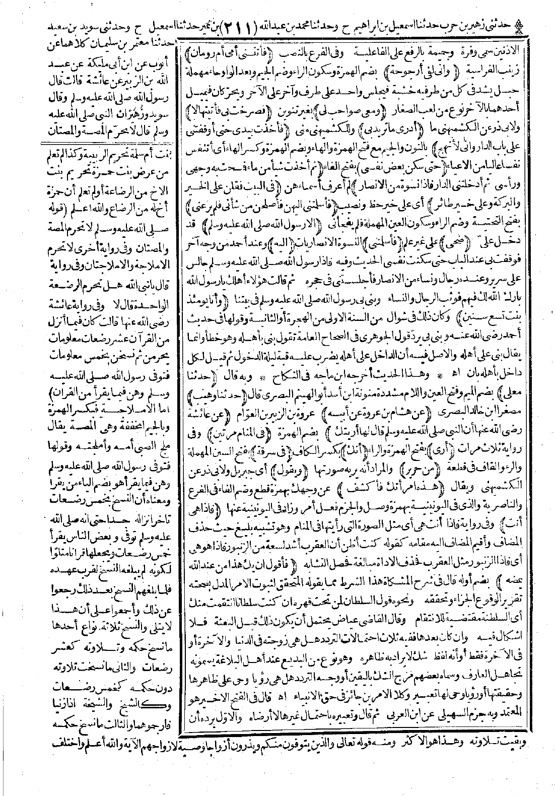 الأذنين سمي وفرة وجميمة بالرفع على الفاعلية وفي الفرع بالنصب (فأتتني أمي أم رومان) زينب الفراسية (وإني لفي أرجوحة) بضم الهمزة وسكون الراء وضم الجيم وبعد الواو حاء مهملة حبل يشد في كل من طرفيه خشبة فيجلس واحد على طرف وآخر على الآخر ويحركان فيميل أحدهما بالآخر نوع من لعب الصغار (ومعي صواحب لي) بغير تنوين (فصرخت بيدي فأتيتها لا) ولأبي ذر عن الكشميهني: ما (أدري ما تريد بي) وللكشميهني: مني (فأخذت بيدي حتى أوقفتني على باب الدار وأني لأنهج) بالنون والجيم مع فتح الهمزة والهاء وبضم الهمزة وكسر الهاء أي أتنفس نفسًا عاليًا من الإعياء (حتى سكن بعض نفسي) بفتح الفاء (ثم أخت شيئًا من ماء فمسحت به وجهي ورأسي ثم أدخلتني الدار فإذا نسوة من الأنصار) لم أعرف أسماءهن (في البيت فقلن: على الخير والبركة وعلى خير طائر) أي على خير حظ ونصيب (فأشلمتني إليهن فأصلحن من شأني فلم يرعني) بفتح التحتية وضم الراء وسكون العين المهملة فلم يفجأني (إلا رسول الله -صَلَّى اللَّهُ عَلَيْهِ وَسَلَّمَ-) قد دخل عليّ (ضحى) على غير علم (فأسلمنني) النسوة الأنصاريات (إليه). وعند أحمد من وجه آخر فوقفت بي عند الباب حتى سكنت نفسي الحديث. وفيه: فإذا رسول الله -صَلَّى اللَّهُ عَلَيْهِ وَسَلَّمَ- جالس على سرير وعنده رجال ونساء من الأنصار فأجلستني في حجره ثم قالت: هؤلاء أهلك يا رسول الله بارك الله لك فيهم، فوثب الرجال والنساء وبنى بي رسول الله -صَلَّى اللَّهُ عَلَيْهِ وَسَلَّمَ- في بيتنا (وأنا يومئذ بنت تسع سنين) وكان ذلك في شوال من السنة الأولى من الهجرة أو الثانية. وقولها في حديث أحمد -رضي الله عنه- وبنى بي يردّ قول الجوهري في الصحاح العامة تقول: بنى بأهله وهو خطأ، وإنما يقال: بنى على أهله والأصل فيه أن الداخل على أهله يضرب عليه قبة ليلة الدخول ثم قيل لكل داخل بأهله بان اهـ.