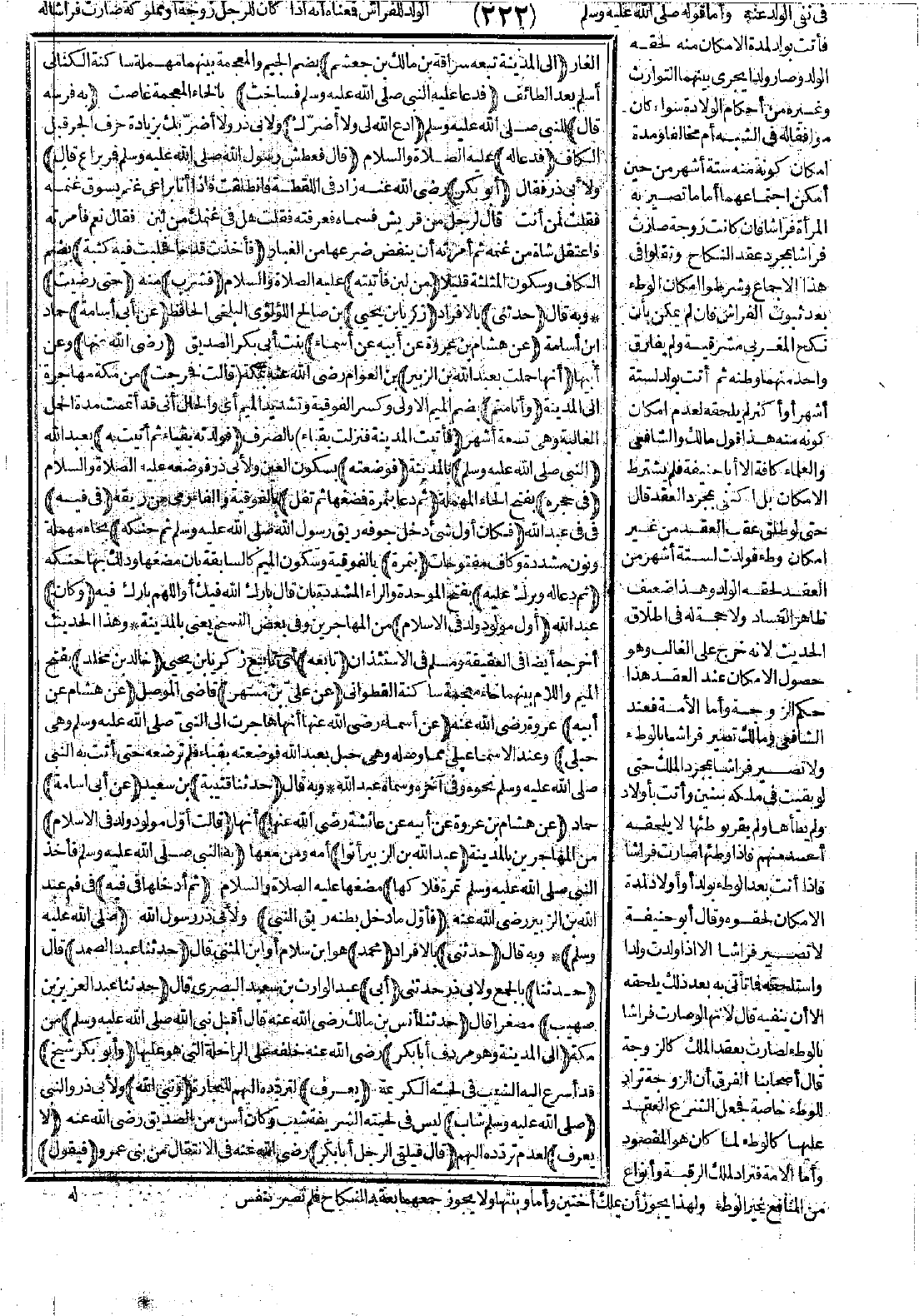 3909 - حَدَّثَنِي زَكَرِيَّاءُ بْنُ يَحْيَى عَنْ أَبِي أُسَامَةَ عَنْ هِشَامِ بْنِ عُرْوَةَ عَنْ أَبِيهِ عَنْ أَسْمَاءَ -رضي الله عنها- أَنَّهَا حَمَلَتْ بِعَبْدِ اللَّهِ بْنِ الزُّبَيْرِ، قَالَتْ: فَخَرَجْتُ وَأَنَا مُتِمٌّ، فَأَتَيْتُ الْمَدِينَةَ، فَنَزَلْتُ بِقُبَاءٍ فَوَلَدْتُهُ بِقُبَاءٍ، ثُمَّ أَتَيْتُ بِهِ النَّبِيَّ -صَلَّى اللَّهُ عَلَيْهِ وَسَلَّمَ- فَوَضَعْتُهُ فِي حَجْرِهِ، ثُمَّ دَعَا بِتَمْرَةٍ فَمَضَغَهَا ثُمَّ تَفَلَ فِي فِيهِ، فَكَانَ أَوَّلَ شَىْءٍ دَخَلَ جَوْفَهُ رِيقُ رَسُولِ اللَّهِ -صَلَّى اللَّهُ عَلَيْهِ وَسَلَّمَ-، ثُمَّ حَنَّكَهُ بِتَمْرَةٍ، ثُمَّ دَعَا لَهُ وَبَرَّكَ عَلَيْهِ، وَكَانَ أَوَّلَ مَوْلُودٍ وُلِدَ فِي الإِسْلاَمِ".