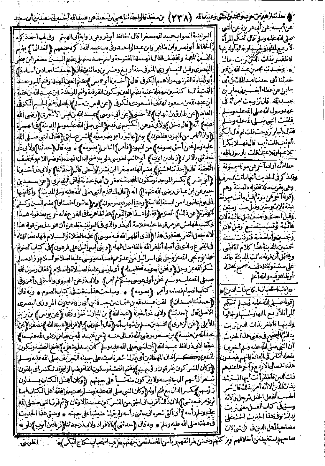 اليونينية الصواب عبيد الله مصغرًا. قال الحافظ أبو ذر: وهي رواية أبي الهيثم، وفي باب أحمد ذكره الحفاظ أبو نصر وابن طاهر وابن عبد الواحد، وفي باب عبيد الله ذكره جميعهم (الغداليّ) بضم الغين المعجمة وتخفيف الدال المهملة المفتوحة، واسم جده سهيل بضم السين مصغرًا ابن صخر البصريّ، وقيل النيسابوري المتوفى سنة أربع وعشرين ومائتين قال: (حدّثنا حماد بن أسامة) أبو أسامة القرشي مولاهم الكوفي قال: (أخبرنا أبو عميس) بضم العين المهملة وبعد التحتية الساكنة سين مهملة عتبة بضم العين وسكون الفوقية وفتح الموحدة ابن عبد الله بن عتبة بن عبد الله بن مسعود الهذلي المسعودي الكوفيّ (عن قيس بن مسلم) الجدلي بفتح الجيم الكوفي العابد (عن طارق بن شهاب) الأحمسي (عن أبي موسى) عبد الله بن قيس الأشعري (-رضي الله عنه-) أنه (قال: دخل) ولأبي ذر عن الكشميهني قدم (النبي -صَلَّى اللَّهُ عَلَيْهِ وَسَلَّمَ- المدينة) في الهجرة (وإذا أناس من اليهود يعظمون) يوم (عاشوراء ويصومونه) لشرع سابق (فقال النبي -صَلَّى اللَّهُ عَلَيْهِ وَسَلَّمَ-):