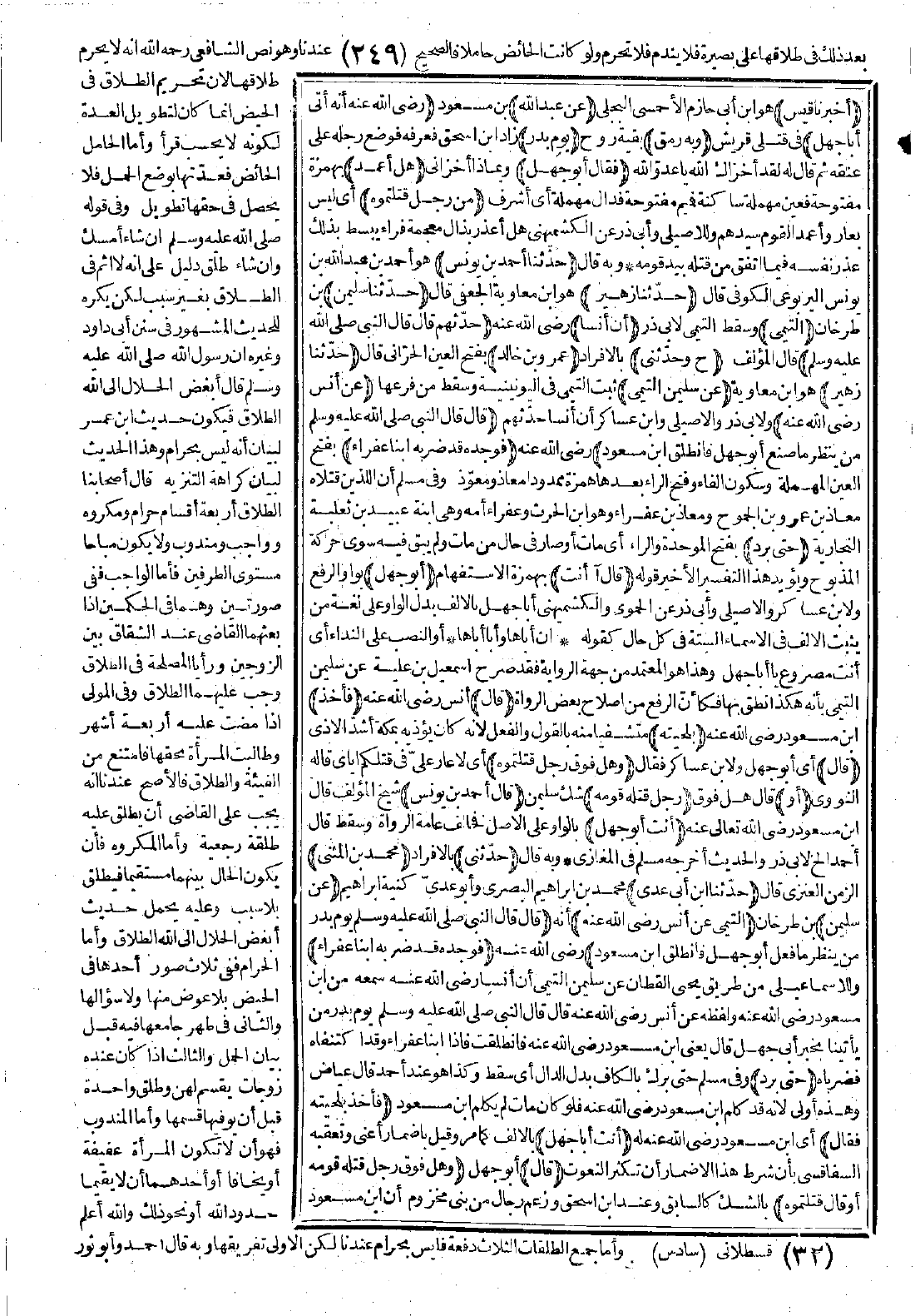 3962 - حَدَّثَنَا أَحْمَدُ بْنُ يُونُسَ حَدَّثَنَا زُهَيْرٌ حَدَّثَنَا سُلَيْمَانُ التَّيْمِيُّ أَنَّ أَنَسًا حَدَّثَهُمْ قَالَ: قَالَ النَّبِيُّ -صَلَّى اللَّهُ عَلَيْهِ وَسَلَّمَ- ح وَحَدَّثَنِي عَمْرُو بْنُ خَالِدٍ حَدَّثَنَا زُهَيْرٌ عَنْ سُلَيْمَانَ التَّيْمِيِّ عَنْ أَنَسٍ -رضي الله عنه- قَالَ: قَالَ النَّبِيُّ -صَلَّى اللَّهُ عَلَيْهِ وَسَلَّمَ-: «مَنْ يَنْظُرُ مَا صَنَعَ أَبُو جَهْلٍ؟» فَانْطَلَقَ ابْنُ مَسْعُودٍ -رضي الله عنه- فَوَجَدَهُ قَدْ ضَرَبَهُ ابْنَا عَفْرَاءَ حَتَّى بَرَدَ قَالَ: آأَنْتَ أَبُو جَهْلٍ قَالَ: فَأَخَذَ بِلِحْيَتِهِ قَالَ: وَهَلْ فَوْقَ رَجُلٍ قَتَلْتُمُوهُ أَوْ رَجُلٍ قَتَلَهُ قَوْمُهُ؟ قَالَ أَحْمَدُ بْنُ يُونُسَ: أَنْتَ أَبُو جَهْلٍ. [الحديث 3962 - طرفاه في: 3963، 4020].