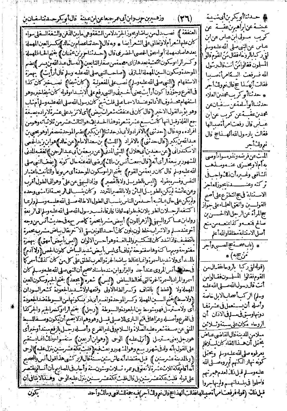 3547 - حَدَّثَنا ابْنُ بُكَيْرٍ قَالَ: حَدَّثَنا اللَّيْثُ عَنْ خَالِدٍ عَنْ سَعِيدِ بْنِ أَبِي هِلاَلٍ عَنْ رَبِيعَةَ بْنِ أَبِي عَبْدِ الرَّحْمَنِ قَالَ: "سَمِعْتُ أَنَسَ بْنَ مَالِكٍ يَصِفُ النَّبِيَّ -صَلَّى اللَّهُ عَلَيْهِ وَسَلَّمَ- قَالَ: كَانَ رَبْعَةً مِنَ الْقَوْمِ، لَيْسَ بِالطَّوِيلِ وَلاَ بِالْقَصِيرِ، أَزْهَرَ اللَّوْنِ، لَيْسَ بِأَبْيَضَ أَمْهَقَ وَلاَ آدَمَ، لَيْسَ بِجَعْدٍ قَطَطٍ وَلاَ سَبْطٍ رَجِلٍ. أُنْزِلَ عَلَيْهِ وَهْوَ ابْنُ أَرْبَعِينَ، فَلَبِثَ بِمَكَّةَ عَشْرَ سِنِينَ يُنْزَلُ عَلَيْهِ، وَبِالْمَدِينَةِ عَشْرَ سِنِينَ، وَقُبِضَ وَلَيْسَ فِي رَأْسِهِ وَلِحْيَتِهِ عِشْرُونَ شَعَرَةً بَيْضَاءَ. قَالَ رَبِيعَةُ: فَرَأَيْتُ شَعَرًا مِنْ شَعَرِهِ فَإِذَا هُوَ أَحْمَرُ، فَسَأَلْتُ، فَقِيلَ: احْمَرَّ مِنَ الطِّيبِ". [الحديث 3547 - طرفاه في: 3548، 5900].