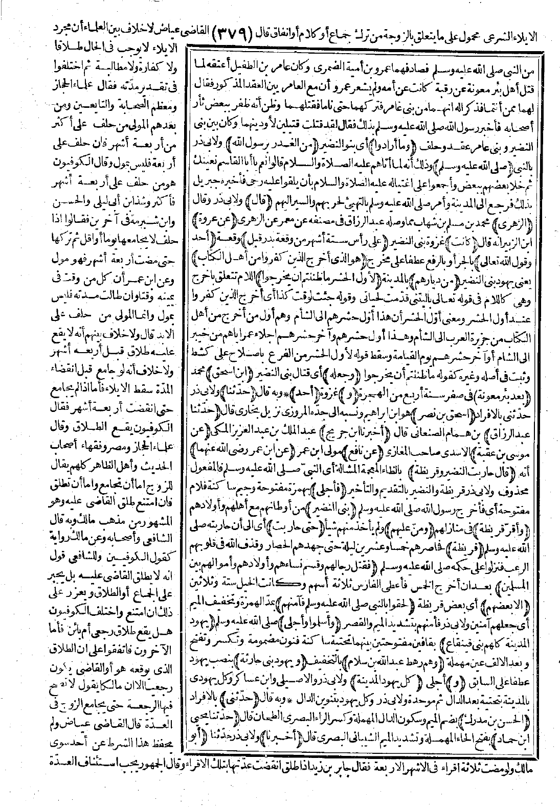 4028 - حَدَّثَنَا إِسْحَاقُ بْنُ نَضْرٍ حَدَّثَنَا عَبْدُ الرَّزَّاقِ أَخْبَرَنَا ابْنُ جُرَيْجٍ عَنْ مُوسَى بْنِ عُقْبَةَ عَنْ نَافِعٍ عَنِ ابْنِ عُمَرَ -رضي الله عنهما- قَالَ: حَارَبَتِ النَّضِيرُ وَقُرَيْظَةُ فَأَجْلَى بَنِي النَّضِيرِ وَأَقَرَّ قُرَيْظَةَ وَمَنَّ عَلَيْهِمْ حَتَّى حَارَبَتْ قُرَيْظَةُ فَقَتَلَ رِجَالَهُمْ وَقَسَمَ نِسَاءَهُمْ وَأَوْلاَدَهُمْ وَأَمْوَالَهُمْ بَيْنَ الْمُسْلِمِينَ إِلاَّ بَعْضَهُمْ لَحِقُوا بِالنَّبِيِّ -صَلَّى اللَّهُ عَلَيْهِ وَسَلَّمَ- فَآمَنَهُمْ وَأَسْلَمُوا وَأَجْلَى يَهُودَ الْمَدِينَةِ كُلَّهُمْ بَنِي قَيْنُقَاعَ وَهُمْ رَهْطُ عَبْدِ اللَّهِ بْنِ سَلاَمٍ وَيَهُودَ بَنِي حَارِثَةَ وَكُلَّ يَهُودِ الْمَدِينَةِ.
