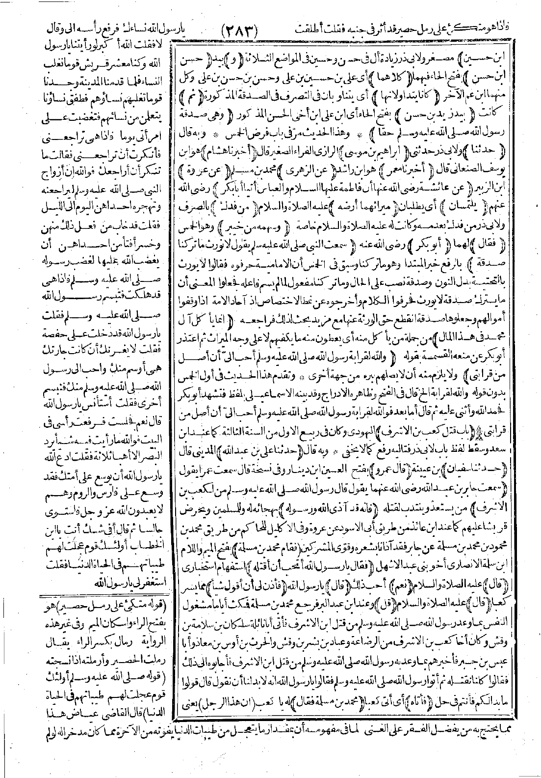 4035 - حَدَّثَنَا إِبْرَاهِيمُ بْنُ مُوسَى أَخْبَرَنَا هِشَامٌ حَدَّثَنَا مَعْمَرٌ عَنِ الزُّهْرِيِّ عَنْ عُرْوَةَ عَنْ عَائِشَةَ -رضي الله عنه- أَنَّ فَاطِمَةَ - عَلَيْهَا السَّلاَمُ - وَالْعَبَّاسَ أَتَيَا أَبَا بَكْرٍ يَلْتَمِسَانِ مِيرَاثَهُمَا أَرْضَهُ مِنْ فَدَكٍ وَسَهْمَهُ مِنْ خَيْبَرَ.
