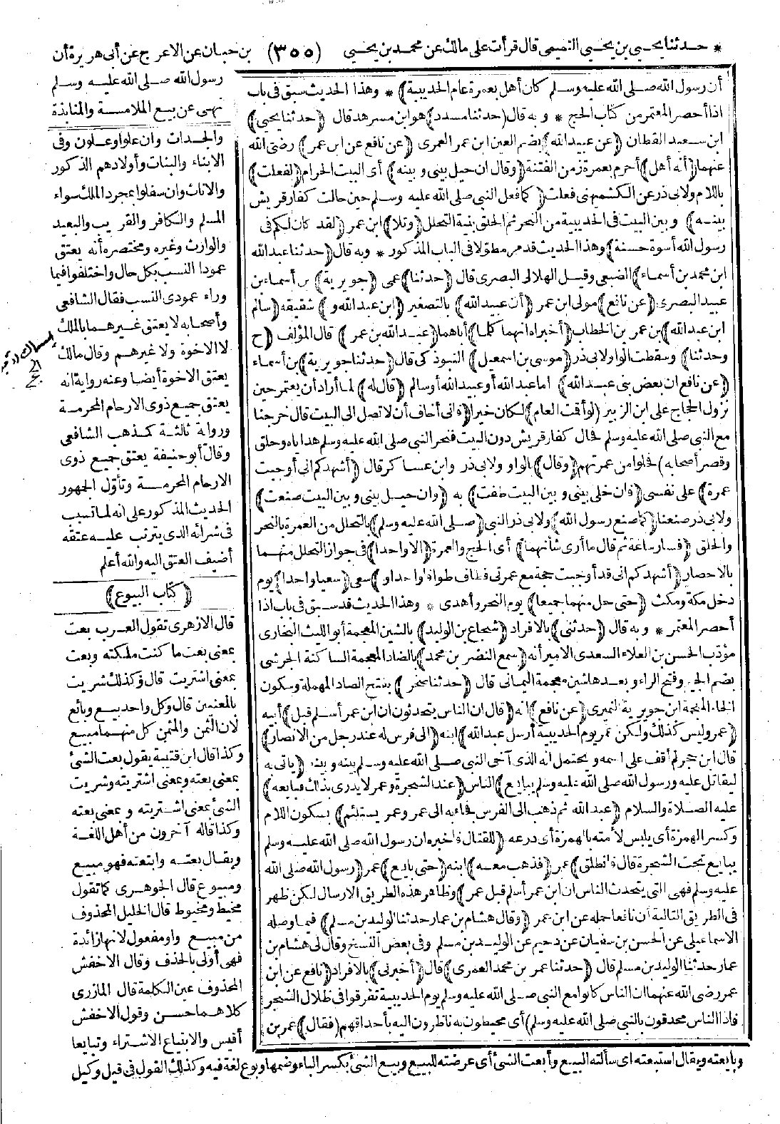 4187 - وَقَالَ هِشَامُ بْنُ عَمَّارٍ: حَدَّثَنَا الْوَلِيدُ بْنُ مُسْلِمٍ، حَدَّثَنَا عُمَرُ بْنُ مُحَمَّدٍ الْعُمَرِيُّ، أَخْبَرَنِي نَافِعٌ عَنِ ابْنِ عُمَرَ -رضي الله عنهما-، أَنَّ النَّاسَ كَانُوا مَعَ النَّبِيِّ -صَلَّى اللَّهُ عَلَيْهِ وَسَلَّمَ- يَوْمَ الْحُدَيْبِيَةِ، تَفَرَّقُوا فِي ظِلاَلِ الشَّجَرِ فَإِذَا النَّاسُ مُحْدِقُونَ بِالنَّبِيِّ -صَلَّى اللَّهُ عَلَيْهِ وَسَلَّمَ- فَقَالَ: يَا عَبْدَ اللَّهِ انْظُرْ مَا شَأْنُ النَّاسِ قَدْ أَحْدَقُوا