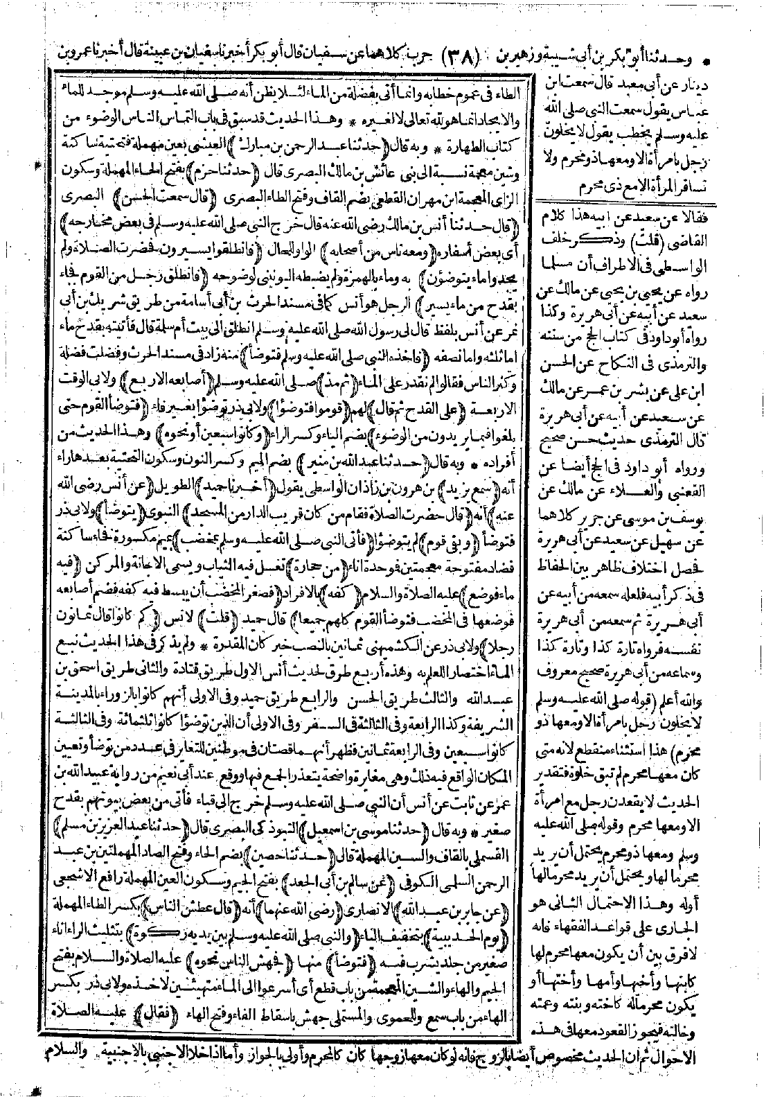 3574 - حَدَّثَنَا عَبْدُ الرَّحْمَنِ بْنُ مُبَارَكٍ حَدَّثَنَا حَزْمٌ قَالَ: سَمِعْتُ الْحَسَنَ قَالَ: حَدَّثَنَا أَنَسُ بْنُ مَالِكٍ -رضي الله عنه- قَالَ: «خَرَجَ النَّبِيُّ -صَلَّى اللَّهُ عَلَيْهِ وَسَلَّمَ- فِي بَعْضِ مَخَارِجِهِ وَمَعَهُ نَاسٌ مِنْ أَصْحَابِهِ، فَانْطَلَقُوا يَسِيرُونَ، فَحَضَرَتِ الصَّلاَةُ فَلَمْ يَجِدُوا مَاءً يَتَوَضَّئُونَ. فَانْطَلَقَ رَجُلٌ مِنَ الْقَوْمِ فَجَاءَ بِقَدَحٍ مِنْ مَاءٍ يَسِيرٍ، فَأَخَذَهُ النَّبِيُّ -صَلَّى اللَّهُ عَلَيْهِ وَسَلَّمَ- فَتَوَضَّأَ، ثُمَّ مَدَّ أَصَابِعَهُ الأَرْبَعَ عَلَى الْقَدَحِ، ثُمَّ قَالَ: قُومُوا فَتَوَضَّئُوا، فَتَوَضَّأَ الْقَوْمُ حَتَّى بَلَغُوا فِيمَا يُرِيدُونَ مِنَ الْوَضُوءِ، وَكَانُوا سَبْعِينَ أَوْ نَحْوَهُ».