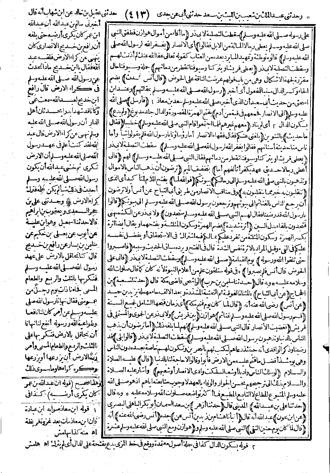 4333 - حَدَّثَنَا عَلِيُّ بْنُ عَبْدِ اللَّهِ حَدَّثَنَا أَزْهَرُ عَنِ ابْنِ عَوْنٍ أَنْبَأَنَا هِشَامُ بْنُ زَيْدِ بْنِ أَنَسٍ عَنْ أَنَسٍ -رضي الله عنه- قَالَ: لَمَّا كَانَ يَوْمَ حُنَيْنٍ الْتَقَى هَوَازِنُ وَمَعَ النَّبِيِّ -صَلَّى اللَّهُ عَلَيْهِ وَسَلَّمَ- عَشَرَةُ آلاَفٍ وَالطُّلَقَاءُ فَأَدْبَرُوا قَالَ: «يَا مَعْشَرَ الأَنْصَارِ»؟ قَالُوا: لَبَّيْكَ يَا رَسُولَ اللَّهِ وَسَعْدَيْكَ لَبَّيْكَ نَحْنُ بَيْنَ يَدَيْكَ فَنَزَلَ النَّبِيُّ -صَلَّى اللَّهُ عَلَيْهِ وَسَلَّمَ- فَقَالَ: «أَنَا عَبْدُ اللَّهِ وَرَسُولُهُ» فَانْهَزَمَ الْمُشْرِكُونَ فَأَعْطَى الطُّلَقَاءَ وَالْمُهَاجِرِينَ وَلَمْ يُعْطِ الأَنْصَارَ شَيْئًا فَقَالُوا: فَدَعَاهُمْ فَأَدْخَلَهُمْ فِي قُبَّةٍ فَقَالَ: «أَمَا تَرْضَوْنَ أَنْ يَذْهَبَ النَّاسُ بِالشَّاةِ وَالْبَعِيرِ وَتَذْهَبُونَ بِرَسُولِ اللَّهِ -صَلَّى اللَّهُ عَلَيْهِ وَسَلَّمَ-»؟ فَقَالَ النَّبِيُّ -صَلَّى اللَّهُ عَلَيْهِ وَسَلَّمَ-: «لَوْ سَلَكَ النَّاسُ وَادِيًا، وَسَلَكَتِ الأَنْصَارُ شِعْبًا، لاَخْتَرْتُ شِعْبَ الأَنْصَارِ».