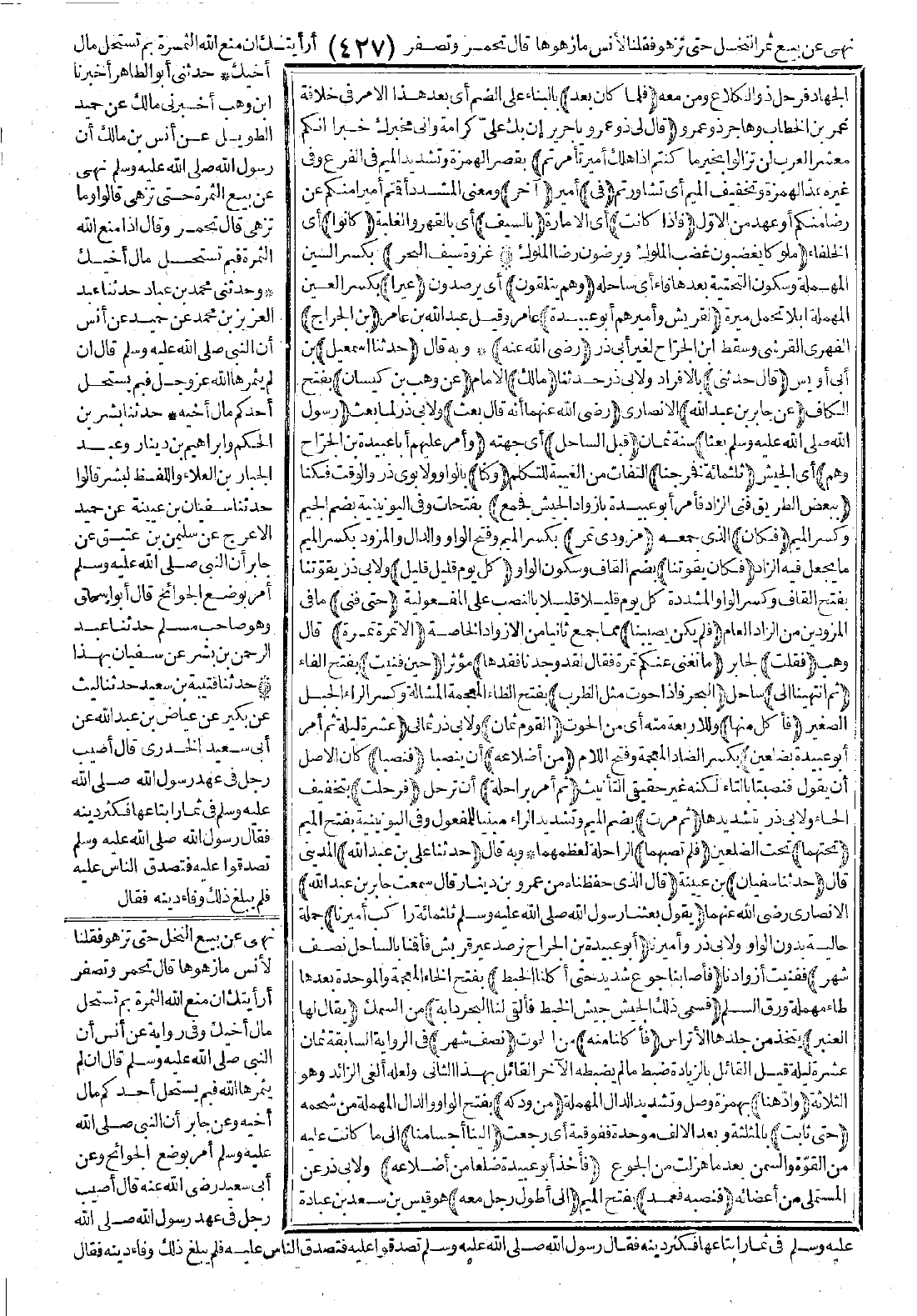 4361 - حَدَّثَنَا عَلِيُّ بْنُ عَبْدِ اللَّهِ حَدَّثَنَا سُفْيَانُ قَالَ: الَّذِي حَفِظْنَاهُ مِنْ عَمْرِو بْنِ دِينَارٍ قَالَ: سَمِعْتُ جَابِرَ بْنَ عَبْدِ اللَّهِ يَقُولُ: بَعَثَنَا رَسُولُ اللَّهِ -صَلَّى اللَّهُ عَلَيْهِ وَسَلَّمَ- ثَلاَثَمِائَةِ رَاكِبٍ، أَمِيرُنَا أَبُو عُبَيْدَةَ بْنُ الْجَرَّاحِ نَرْصُدُ عِيرَ قُرَيْشٍ فَأَقَمْنَا بِالسَّاحِلِ نِصْفَ شَهْرٍ فَأَصَابَنَا جُوعٌ شَدِيدٌ حَتَّى أَكَلْنَا الْخَبَطَ فَسُمِّيَ ذَلِكَ الْجَيْشُ جَيْشَ الْخَبَطِ فَأَلْقَى لَنَا الْبَحْرُ دَابَّةً يُقَالُ لَهَا: الْعَنْبَرُ، فَأَكَلْنَا مِنْهُ نِصْفَ شَهْرٍ، وَادَّهَنَّا مِنْ وَدَكِهِ حَتَّى ثَابَتْ إِلَيْنَا أَجْسَامُنَا فَأَخَذَ أَبُو عُبَيْدَةَ ضِلَعًا مِنْ أَضْلاَعِهِ، فَنَصَبَهُ فَعَمَدَ إِلَى أَطْوَلِ رَجُلٍ مَعَهُ قَالَ سُفْيَانُ مَرَّةً: ضِلَعًا مِنْ أَضْلاعِهِ فَنَصَبَهُ وَأَخَذَ رَجُلاً وَبَعِيرًا فَمَرَّ تَحْتَهُ، قَالَ جَابِرٌ: وَكَانَ رَجُلٌ مِنَ الْقَوْمِ نَحَرَ ثَلاَثَ جَزَائِرَ ثُمَّ نَحَرَ ثَلاَثَ جَزَائِرَ، ثُمَّ نَحَرَ ثَلاَثَ جَزَائِرَ ثُمَّ إِنَّ أَبَا عُبَيْدَةَ نَهَاهُ. وَكَانَ عَمْرٌو يَقُولُ: أَخْبَرَنَا أَبُو صَالِحٍ أَنَّ قَيْسَ بْنَ سَعْدٍ قَالَ لأَبِيهِ: كُنْتُ فِي الْجَيْشِ فَجَاعُوا، قَالَ انْحَرْ قَالَ: نَحَرْتُ قَالَ: ثُمَّ جَاعُوا قَالَ: انْحَرْ قَالَ: نَحَرْتُ، قَالَ: ثُمَّ جَاعُوا، قَالَ: انْحَرْ، قَالَ: نَحَرْتُ ثُمَّ جَاعُوا قَالَ: انْحَرْ، قَالَ: نُهِيتُ.