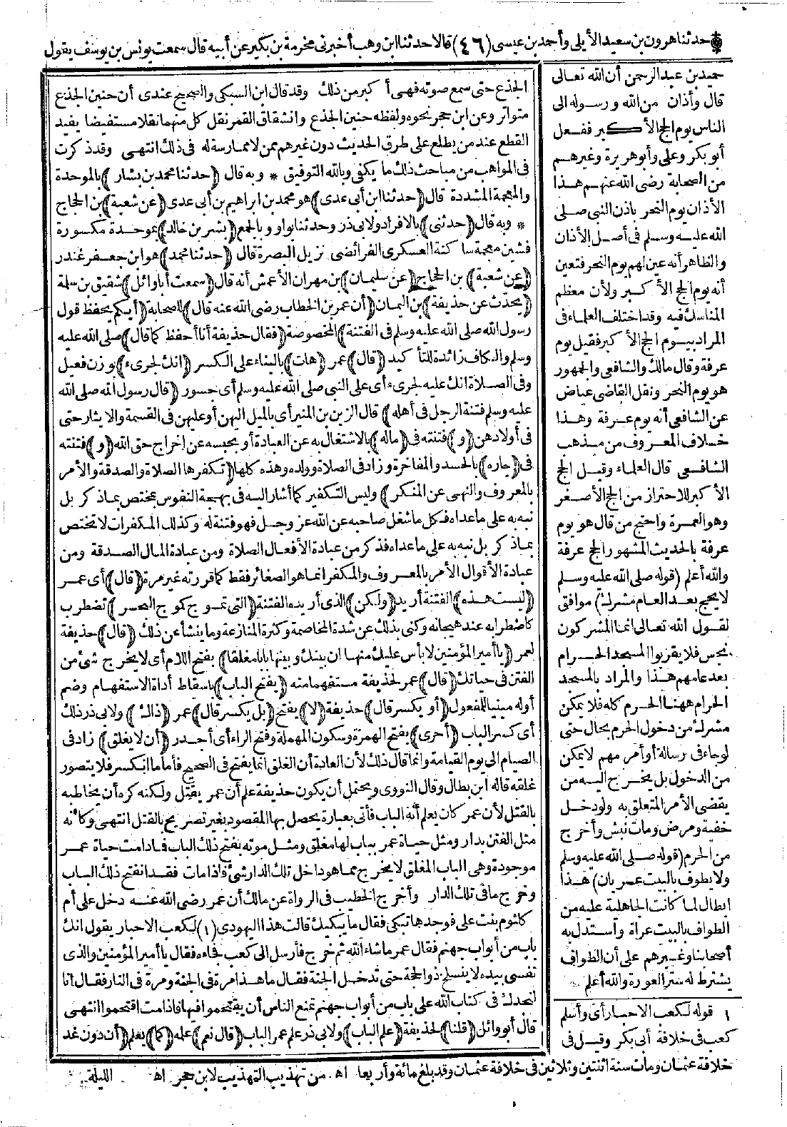 3586 - حَدَّثَنَا مُحَمَّدُ بْنُ بَشَّارٍ حَدَّثَنَا ابْنُ أَبِي عَدِيٍّ عَنْ شُعْبَةَ. وحَدَّثَنا بِشْرُ بْنُ خَالِدٍ حَدَّثَنَا مُحَمَّدٌ عَنْ شُعْبَةَ عَنْ سُلَيْمَانَ سَمِعْتُ أَبَا وَائِلٍ يُحَدِّثُ عَنْ حُذَيْفَةَ: «أَنَّ عُمَرَ بْنَ الْخَطَّابِ -رضي الله عنه- قَالَ: أَيُّكُمْ يَحْفَظُ قَوْلَ رَسُولِ اللَّهِ -صَلَّى اللَّهُ عَلَيْهِ وَسَلَّمَ- فِي الْفِتْنَةِ؟ فَقَالَ حُذَيْفَةُ: أَنَا أَحْفَظُ كَمَا قَالَ. قَالَ: هَاتِ، إِنَّكَ لَجَرِيءٌ. قَالَ رَسُولُ اللَّهِ -صَلَّى اللَّهُ عَلَيْهِ وَسَلَّمَ-: فِتْنَةُ الرَّجُلِ فِي أَهْلِهِ وَمَالِهِ وَجَارِهِ تُكَفِّرُهَا الصَّلاَةُ وَالصَّدَقَةُ وَالأَمْرُ بِالْمَعْرُوفِ وَالنَّهْيُ عَنِ الْمُنْكَرِ قَالَ: لَيْسَتْ هَذِهِ، وَلَكِنِ الَّتِي تَمُوجُ كَمَوْجِ الْبَحْرِ، قَالَ: يَا أَمِيرَ الْمُؤْمِنِينَ لاَ بَأْسَ عَلَيْكَ مِنْهَا، إِنَّ بَيْنَكَ وَبَيْنَهَا بَابًا مُغْلَقًا. قَالَ: يُفْتَحُ الْبَابُ أَوْ يُكْسَرُ؟ قَالَ: لاَ، بَلْ يُكْسَرُ، قَالَ: ذَاكَ أَحْرَى أَنْ لاَ يُغْلَقَ. قُلْنَا: عَلِمَ الْبَابَ؟ قَالَ: نَعَمْ، كَمَا أَنَّ دُونَ غَدٍ اللَّيْلَةَ. إِنِّي حَدَّثْتُهُ حَدِيثًا لَيْسَ بِالأَغَالِيطِ. فَهِبْنَا أَنْ نَسْأَلَهُ، وَأَمَرْنَا مَسْرُوقًا فَسَأَلَهُ فَقَالَ: مَنِ الْبَابُ؟ قَالَ: عُمَرُ».