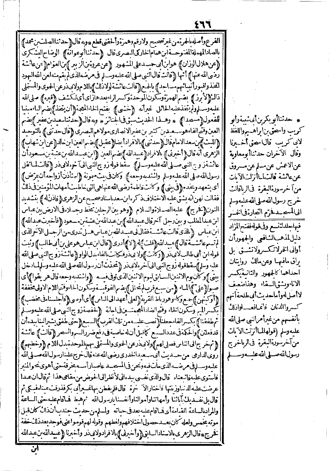4441 - حَدَّثَنَا الصَّلْتُ بْنُ مُحَمَّدٍ، حَدَّثَنَا أَبُو عَوَانَةَ عَنْ هِلاَلٍ الْوَزَّانِ، عَنْ عُرْوَةَ بْنِ الزُّبَيْرِ عَنْ عَائِشَةَ -رضي الله عنها- قَالَتْ: قَالَ النَّبِيُّ -صَلَّى اللَّهُ عَلَيْهِ وَسَلَّمَ- فِي مَرَضِهِ الَّذِي لَمْ يَقُمْ مِنْهُ: «لَعَنَ اللَّهُ الْيَهُودَ اتَّخَذُوا قُبُورَ أَنْبِيَائِهِمْ مَسَاجِدَ» قَالَتْ عَائِشَةُ: لَوْلاَ ذَلِكَ لأُبْرِزَ قَبْرُهُ خَشِيَ أَنْ يُتَّخَذَ مَسْجِدًا.