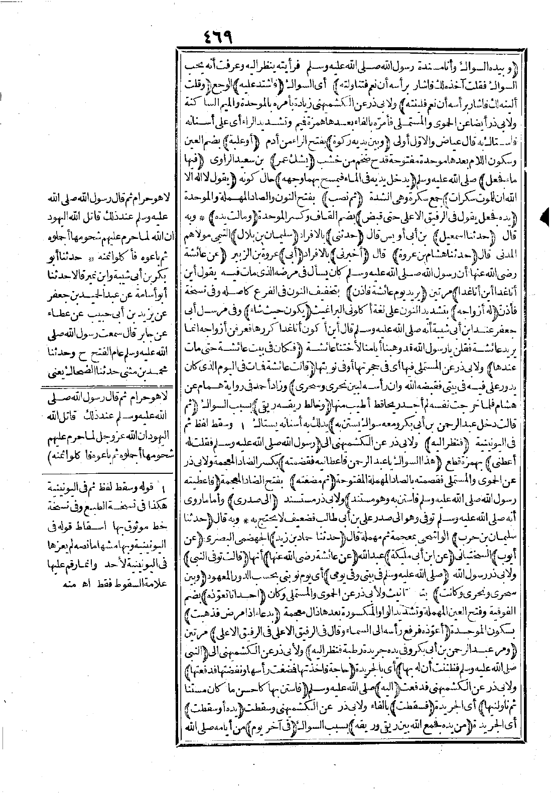 وَكَانَتْ إِحْدَانَا تُعَوِّذُهُ بِدُعَاءٍ إِذَا مَرِضَ، فَذَهَبْتُ أُعَوِّذُهُ فَرَفَعَ رَأْسَهُ إِلَى السَّمَاءِ وَقَالَ: «فِي الرَّفِيقِ الأَعْلَى، فِي الرَّفِيقِ الأَعْلَى» وَمَرَّ عَبْدُ الرَّحْمَنِ بْنُ أَبِي بَكْرٍ وَفِي يَدِهِ جَرِيدَةٌ رَطْبَةٌ فَنَظَرَ إِلَيْهِ النَّبِيُّ -صَلَّى اللَّهُ عَلَيْهِ وَسَلَّمَ-، فَظَنَنْتُ أَنَّ لَهُ بِهَا حَاجَةً، فَأَخَذْتُهَا فَمَضَغْتُ رَأْسَهَا وَنَفَضْتُهَا، فَدَفَعْتُهَا إِلَيْهِ فَاسْتَنَّ بِهَا كَأَحْسَنِ مَا كَانَ مُسْتَنًّا، ثُمَّ نَاوَلَنِيهَا فَسَقَطَتْ يَدُهُ أَوْ سَقَطَتْ مِنْ يَدِهِ فَجَمَعَ اللَّهُ بَيْنَ رِيقِي وَرِيقِهِ، فِي آخِرِ يَوْمٍ مِنَ الدُّنْيَا وَأَوَّلِ يَوْمٍ مِنَ الآخِرَةِ.