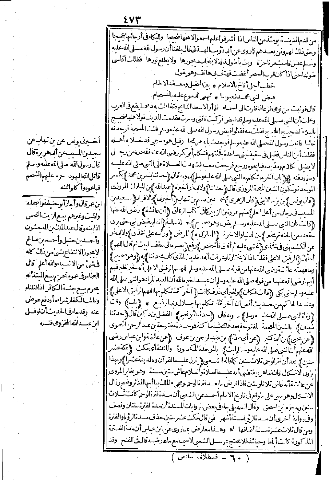 4463 - حَدَّثَنَا بِشْرُ بْنُ مُحَمَّدٍ، حَدَّثَنَا عَبْدُ اللَّهِ قَالَ يُونُسُ: قَالَ الزُّهْرِيُّ: أَخْبَرَنِي سَعِيدُ بْنُ الْمُسَيَّبِ فِي رِجَالٍ مِنْ أَهْلِ الْعِلْمِ، أَنَّ عَائِشَةَ قَالَتْ: كَانَ النَّبِيُّ -صَلَّى اللَّهُ عَلَيْهِ وَسَلَّمَ- يَقُولُ وَهْوَ صَحِيحٌ: «إِنَّهُ لَمْ يُقْبَضْ نَبِيٌّ حَتَّى يَرَى مَقْعَدَهُ مِنَ الْجَنَّةِ، ثُمَّ يُخَيَّرَ» فَلَمَّا نَزَلَ بِهِ وَرَأْسُهُ عَلَى فَخِذِي غُشِيَ عَلَيْهِ، ثُمَّ أَفَاقَ فَأَشْخَصَ بَصَرَهُ إِلَى سَقْفِ الْبَيْتِ، ثُمَّ قَالَ: «اللَّهُمَّ الرَّفِيقَ الأَعْلَى» فَقُلْتُ: إِذًا لاَ يَخْتَارُنَا وَعَرَفْتُ أَنَّهُ الْحَدِيثُ الَّذِي كَانَ يُحَدِّثُنَا بِهِ وَهْوَ صَحِيحٌ، قَالَتْ: فَكَانَتْ آخِرَ كَلِمَةٍ تَكَلَّمَ بِهَا «اللَّهُمَّ الرَّفِيقَ الأَعْلَى».