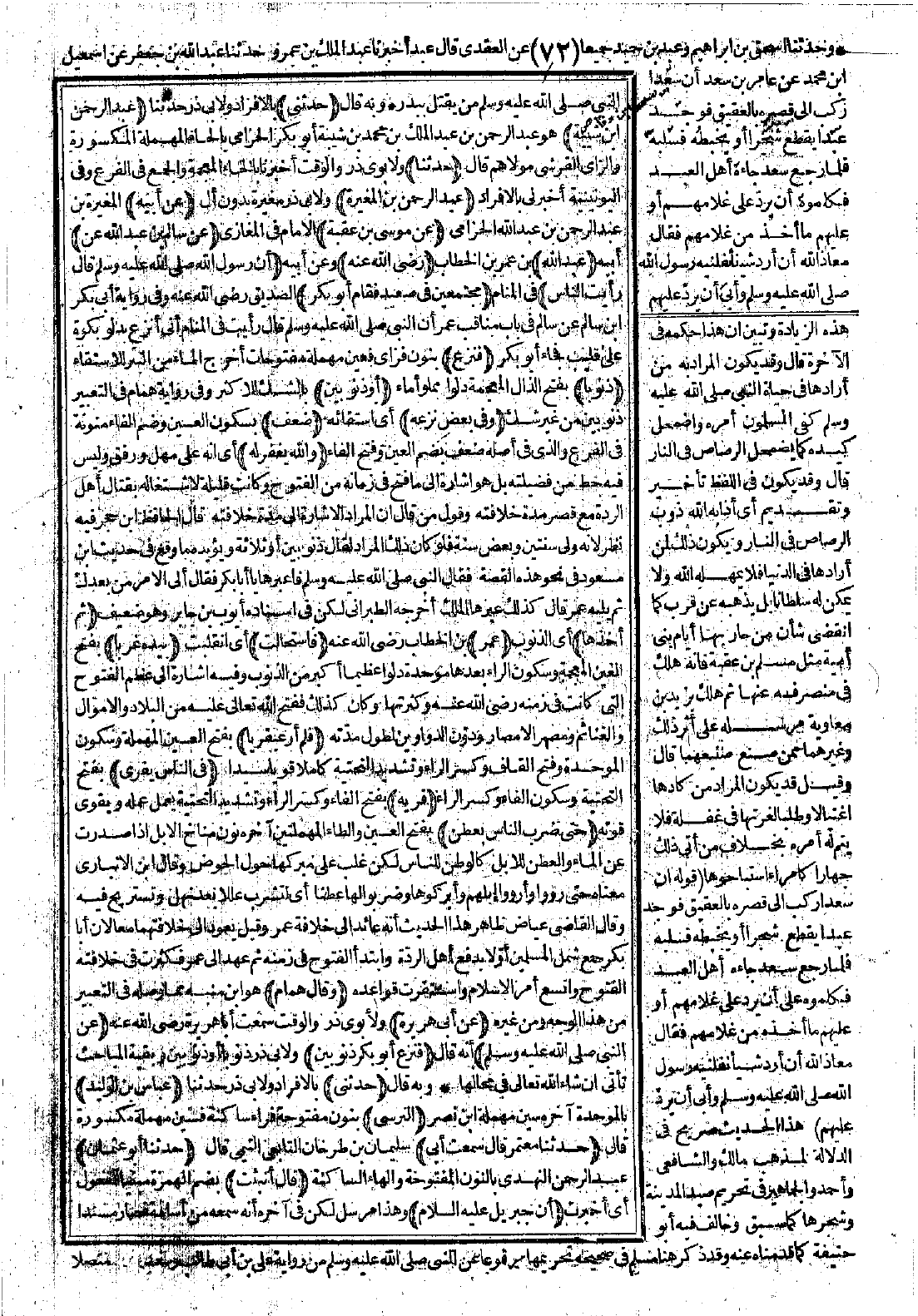 3633 - حَدَّثَنا عَبْدُ الرَّحْمَنِ بْنُ شَيْبَةَ حَدَّثَنَا عَبْدُ الرَّحْمَنِ بْنُ الْمُغِيرَةِ عَنْ أَبِيهِ عَنْ مُوسَى بْنِ عُقْبَةَ عَنْ سَالِمِ بْنِ عَبْدِ اللَّهِ عَنْ عَبْدِ اللَّهِ -رضي الله عنه- أَنَّ رَسُولَ اللَّهِ -صَلَّى اللَّهُ عَلَيْهِ وَسَلَّمَ- قَالَ: «رَأَيْتُ النَّاسَ مُجْتَمِعِينَ فِي صَعِيدٍ فَقَامَ أَبُو بَكْرٍ فَنَزَعَ ذَنُوبًا أَوْ ذَنُوبَيْنِ وَفِي بَعْضِ نَزْعِهِ ضَعْفٌ وَاللَّهُ يَغْفِرُ لَهُ، ثُمَّ أَخَذَهَا عُمَرُ فَاسْتَحَالَتْ بِيَدِهِ غَرْبًا. فَلَمْ أَرَ عَبْقَرِيًّا فِي النَّاسِ يَفْرِي فَرِيَّهُ، حَتَّى ضَرَبَ النَّاسُ بِعَطَنٍ».