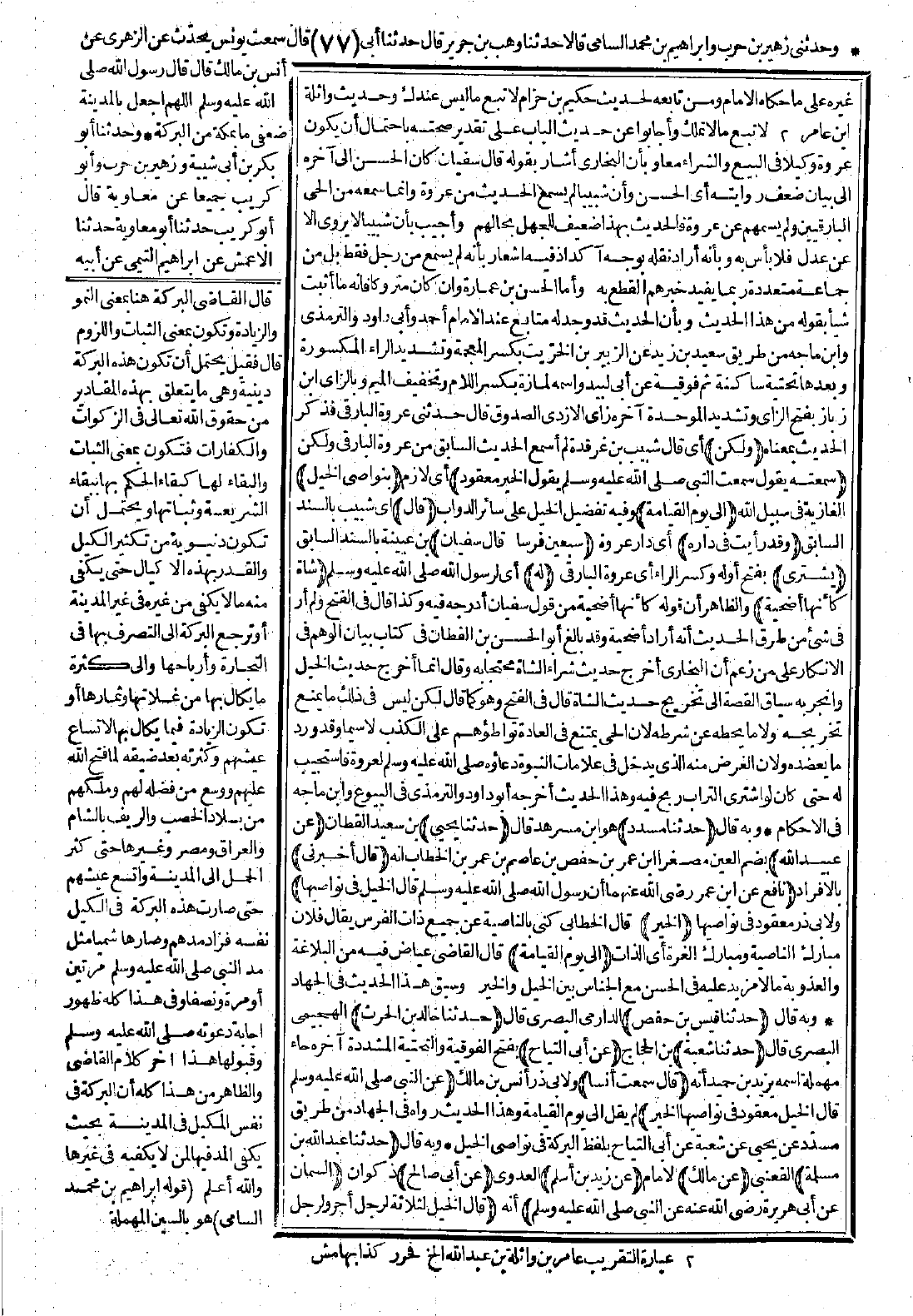 3643 - حَدَّثَنَا وَلَكِنْ سَمِعْتُهُ يَقُولُ: سَمِعْتُ النَّبِيَّ -صَلَّى اللَّهُ عَلَيْهِ وَسَلَّمَ- يَقُولُ: «الْخَيْرُ مَعْقُودٌ بِنَوَاصِي الْخَيْلِ إِلَى يَوْمِ الْقِيَامَةِ». قَالَ: وَقَدْ رَأَيْتُ فِي دَارِهِ سَبْعِينَ فَرَسًا. قَالَ سُفْيَانُ: «يَشْتَرِي لَهُ شَاةً كَأَنَّهَا أُضْحِيَّةٌ».