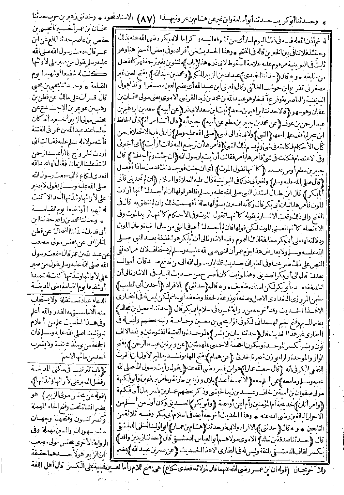 3661 - حَدَّثَنا هِشَامُ بْنُ عَمَّارٍ حَدَّثَنَا صَدَقَةُ بْنُ خَالِدٍ حَدَّثَنَا زَيْدُ بْنُ وَاقِدٍ عَنْ بُسْرِ بْنِ عُبَيْدِ اللَّهِ عَنْ عَائِذِ اللَّهِ أَبِي إِدْرِيسَ عَنْ أَبِي الدَّرْدَاءِ -رضي الله عنه- قَالَ: «كُنْتُ جَالِسًا عِنْدَ النَّبِيِّ -صَلَّى اللَّهُ عَلَيْهِ وَسَلَّمَ-، إِذْ أَقْبَلَ أَبُو بَكْرٍ آخِذًا بِطَرَفِ ثَوْبِهِ حَتَّى أَبْدَى عَنْ رُكْبَتِهِ، فَقَالَ النَّبِيُّ -صَلَّى اللَّهُ عَلَيْهِ وَسَلَّمَ-: أَمَّا صَاحِبُكُمْ فَقَدْ غَامَرَ، فَسَلَّمَ وَقَالَ: يَا رَسُولَ الله، إِنِّي كَانَ بَيْنِي وَبَيْنَ ابْنِ الْخَطَّابِ شَىْءٌ، فَأَسْرَعْتُ إِلَيْهِ ثُمَّ نَدِمْتُ، فَسَأَلْتُهُ أَنْ يَغْفِرَ لِي فَأَبَى عَلَيَّ، فَأَقْبَلْتُ إِلَيْكَ. فَقَالَ: يَغْفِرُ اللَّهُ لَكَ يَا أَبَا بَكْرٍ (ثَلاَثًا). ثُمَّ إِنَّ عُمَرَ نَدِمَ، فَأَتَى مَنْزِلَ أَبِي بَكْرٍ فَسَأَلَ: أَثَمَّ أَبُو بَكْرٍ؟ فَقَالُوا: لاَ. فَأَتَى إِلَى النَّبِيِّ -صَلَّى اللَّهُ عَلَيْهِ وَسَلَّمَ-، فَجَعَلَ وَجْهُ النَّبِيِّ -صَلَّى اللَّهُ عَلَيْهِ وَسَلَّمَ- يَتَمَعَّرُ، حَتَّى أَشْفَقَ أَبُو بَكْرٍ فَجَثَا عَلَى رُكْبَتَيْهِ فَقَالَ: يَا رَسُولَ اللَّهِ، وَاللَّهِ أَنَا كُنْتُ أَظْلَمَ (مَرَّتَيْنِ). فَقَالَ النَّبِيُّ -صَلَّى اللَّهُ عَلَيْهِ وَسَلَّمَ-: إِنَّ اللَّهَ بَعَثَنِي إِلَيْكُمْ، فَقُلْتُمْ: كَذَبْتَ، وَقَالَ أَبُو بَكْرٍ: صَدَقَ، وَوَاسَانِي بِنَفْسِهِ وَمَالِهِ، فَهَلْ أَنْتُمْ تَارِكُو لِي صَاحِبِي؟ (مَرَّتَيْنِ). فَمَا أُوذِيَ بَعْدَهَا». [الحديث 3661 - طرفه في: 4640].