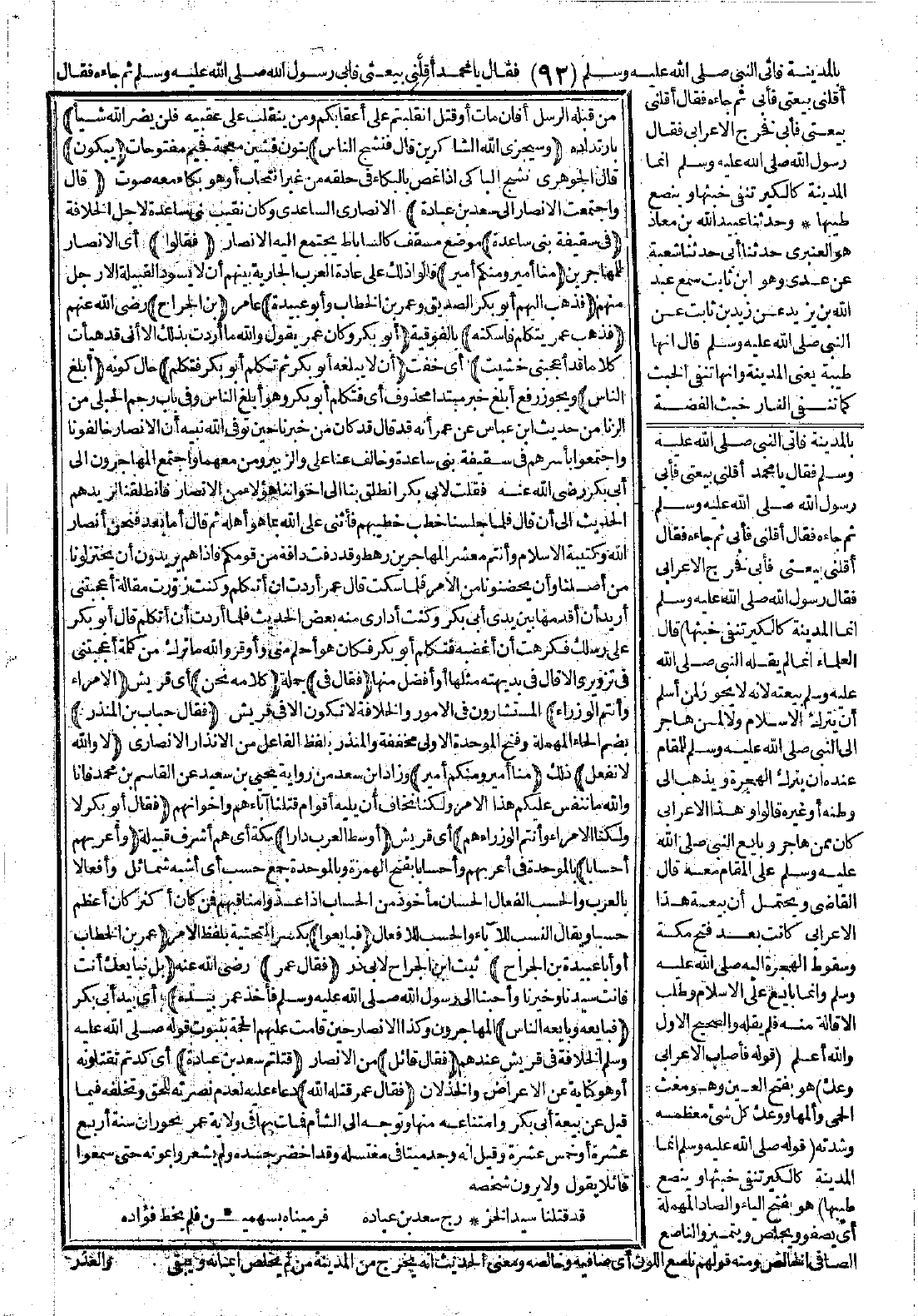 وفي باب رجم الحبلى من الزنا من حديث ابن عباس عن عمر أنه قال: قد كان من خبرنا حين توفى الله نبيه أن الأنصار خالفونا واجتمعوا بأسرهم في سقيفة بني ساعدة وخالف عنا علي والزبير ومن معهما واجتمع المهاجرون إلى أبي بكر -رضي الله عنه-، فقلت لأبي بكر: انطلق بنا إلى إخواننا هؤلاء من الأنصار فانطلقنا نريدهم. الحديث إلى أن قال: فلما جلسنا خطب خطيبهم فأثنى على الله بما هو أهله ثم قال: أما بعد؛ فنحن أنصار الله وكتيبة الإسلام، وأنتم معشر المهاجرين رهط وقد دفت دافة من قومكم فإذا هم يريدون أن يختزلونا من أصلنا وأن يحضنونا من الأمر فلما سكت قال عمر: أردت أن أتكلم وكنت زوّرت مقالة أعجبتني أريد أن أقدمها بين يدي أبي بكر وكنت أداري منه بعض الحديث، فلما أردت أن أتكلم قال أبو بكر: على رسلك فكرهت أن أغضبه، فتكلم أبو بكر فكان هو أحلم مني وأوقر والله ما ترك من كلمة أعجبتني في تزويري إلاّ قال في بديهته مثلها أو أفضل منها.