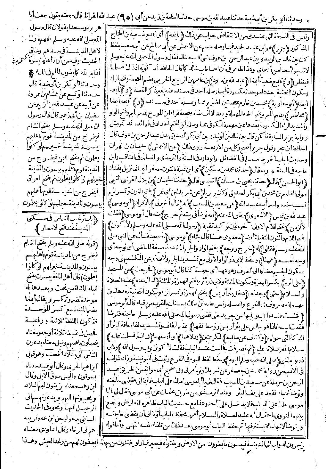 3674 - حَدَّثَنَا مُحَمَّدُ بْنُ مِسْكِينٍ أَبُو الْحَسَنِ حَدَّثَنَا يَحْيَى بْنُ حَسَّانَ حَدَّثَنَا سُلَيْمَانُ عَنْ شَرِيكِ بْنِ أَبِي نَمِرٍ عَنْ سَعِيدِ بْنِ الْمُسَيَّبِ قَالَ: "أَخْبَرَنِي أَبُو مُوسَى الأَشْعَرِيُّ أَنَّهُ تَوَضَّأَ فِي بَيْتِهِ ثُمَّ خَرَجَ فَقُلْتُ: لأَلْزَمَنَّ رَسُولَ اللَّهِ -صَلَّى اللَّهُ عَلَيْهِ وَسَلَّمَ- وَلأَكُونَنَّ مَعَهُ يَوْمِي هَذَا. قَالَ: فَجَاءَ الْمَسْجِدَ فَسَأَلَ عَنِ النَّبِيِّ -صَلَّى اللَّهُ عَلَيْهِ وَسَلَّمَ- فَقَالُوا: خَرَجَ وَوَجَّهَ هَا هُنَا، فَخَرَجْتُ عَلَى إِثْرِهِ أَسْأَلُ عَنْهُ حَتَّى دَخَلَ بِئْرَ أَرِيسٍ، فَجَلَسْتُ عِنْدَ الْبَابِ -وَبَابُهَا مِنْ جَرِيدٍ- حَتَّى قَضَى رَسُولُ اللَّهِ -صَلَّى اللَّهُ عَلَيْهِ وَسَلَّمَ- حَاجَتَهُ فَتَوَضَّأَ، فَقُمْتُ إِلَيْهِ، فَإِذَا هُوَ جَالِسٌ عَلَى بِئْرِ أَرِيسٍ وَتَوَسَّطَ قُفَّهَا وَكَشَفَ عَنْ سَاقَيْهِ وَدَلاَّهُمَا فِي الْبِئْرِ، فَسَلَّمْتُ عَلَيْهِ ثُمَّ انْصَرَفْتُ فَجَلَسْتُ عِنْدَ الْبَابِ فَقُلْتُ: لأَكُونَنَّ بَوَّابَ رَسُولِ اللَّهِ -صَلَّى اللَّهُ عَلَيْهِ وَسَلَّمَ- الْيَوْمَ، فَجَاءَ أَبُو بَكْرٍ فَدَفَعَ الْبَابَ، فَقُلْتُ مَنْ هَذَا؟ فَقَالَ: أَبُو بَكْرٍ. فَقُلْتُ: عَلَى رِسْلِكَ، ثُمَّ ذَهَبْتُ فَقُلْتُ: يَا رَسُولَ اللَّهِ هَذَا أَبُو بَكْرٍ يَسْتَأْذِنُ، فَقَالَ: ائْذَنْ لَهُ وَبَشِّرْهُ بِالْجَنَّةِ. فَأَقْبَلْتُ حَتَّى قُلْتُ لأَبِي بَكْرٍ: ادْخُلْ وَرَسُولُ اللَّهِ -صَلَّى اللَّهُ عَلَيْهِ وَسَلَّمَ- يُبَشِّرُكَ بِالْجَنَّةِ. فَدَخَلَ أَبُو بَكْرٍ فَجَلَسَ عَنْ يَمِينِ رَسُولِ اللَّهِ -صَلَّى اللَّهُ عَلَيْهِ وَسَلَّمَ- مَعَهُ فِي الْقُفِّ وَدَلَّى رِجْلَيْهِ فِي الْبِئْرِ كَمَا صَنَعَ النَّبِيُّ -صَلَّى اللَّهُ عَلَيْهِ وَسَلَّمَ-، وَكَشَفَ عَنْ سَاقَيْهِ. ثُمَّ رَجَعْتُ فَجَلَسْتُ وَقَدْ تَرَكْتُ أَخِي يَتَوَضَّأُ وَيَلْحَقُنِي، فَقُلْتُ إِنْ يُرِدِ اللَّهُ بِفُلاَنٍ خَيْرًا -يُرِيدُ أَخَاهُ- يَأْتِ بِهِ. فَإِذَا إِنْسَانٌ يُحَرِّكُ الْبَابَ، فَقُلْتُ: مَنْ هَذَا؟ فَقَالَ: عُمَرُ بْنُ الْخَطَّابِ، فَقُلْتُ عَلَى رِسْلِكَ ثُمَّ جِئْتُ إِلَى رَسُولِ اللَّهِ -صَلَّى اللَّهُ عَلَيْهِ وَسَلَّمَ- فَسَلَّمْتُ عَلَيْهِ فَقُلْتُ: هَذَا عُمَرُ بْنُ الْخَطَّابِ يَسْتَأْذِنُ. فَقَالَ: ائْذَنْ لَهُ وَبَشِّرْهُ بِالْجَنَّةِ. فَجِئْتُ فَقُلْتُ: ادْخُلْ وَبَشَّرَكَ رَسُولُ اللَّهِ -صَلَّى اللَّهُ عَلَيْهِ وَسَلَّمَ- بِالْجَنَّةِ. فَدَخَلَ فَجَلَسَ مَعَ رَسُولِ اللَّهِ -صَلَّى اللَّهُ عَلَيْهِ وَسَلَّمَ- فِي الْقُفِّ عَنْ يَسَارِهِ وَدَلَّى رِجْلَيْهِ فِي الْبِئْرِ. ثُمَّ رَجَعْتُ فَجَلَسْتُ فَقُلْتُ: إِنْ يُرِدِ اللَّهُ بِفُلاَنٍ خَيْرًا يَأْتِ بِهِ، فَجَاءَ إِنْسَانٌ يُحَرِّكُ الْبَابَ، فَقُلْتُ: مَنْ هَذَا؟ فَقَالَ: عُثْمَانُ بْنُ عَفَّانَ فَقُلْتُ: عَلَى رِسْلِكَ. فَجِئْتُ إِلَى رَسُولِ اللَّهِ -صَلَّى اللَّهُ عَلَيْهِ وَسَلَّمَ- فَأَخْبَرْتُهُ، فَقَالَ: ائْذَنْ لَهُ وَبَشِّرْهُ بِالْجَنَّةِ عَلَى بَلْوَى تُصِيبُهُ، فَجِئْتُهُ فَقُلْتُ لَهُ: ادْخُلْ، وَبَشَّرَكَ رَسُولُ اللَّهِ -صَلَّى اللَّهُ عَلَيْهِ وَسَلَّمَ- بِالْجَنَّةِ عَلَى بَلْوَى تُصِيبُكَ. فَدَخَلَ فَوَجَدَ الْقُفَّ قَدْ مُلِئَ، فَجَلَسَ