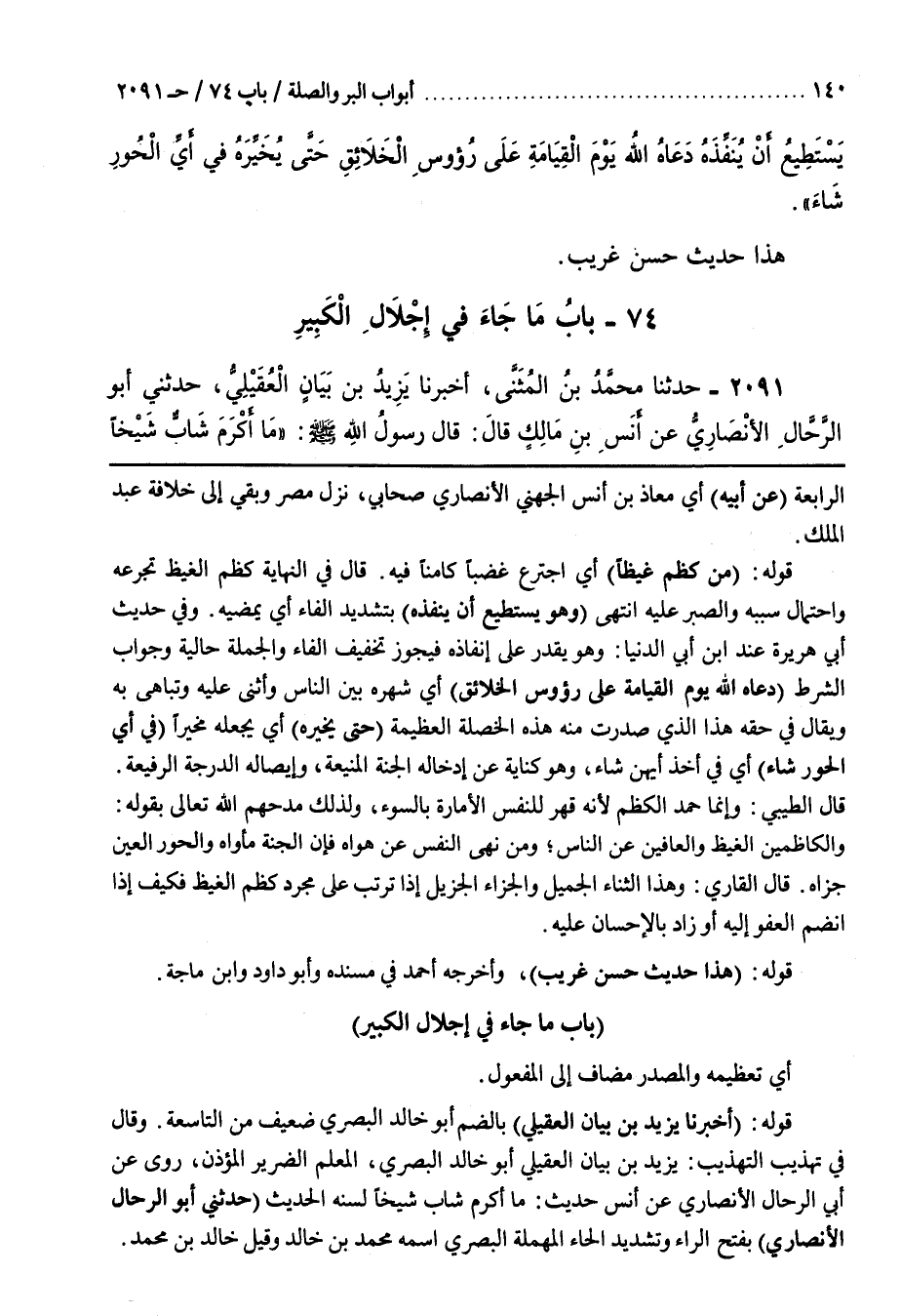 وَقَالَ فِي تَهْذِيبِ التَّهْذِيبِ يَزِيدُ بْنُ بَيَانٍ الْعُقَيْلِيُّ أَبُو خَالِدٍ الْبَصْرِيُّ الْمُعَلِّمُ الضَّرِيرُ الْمُؤَذِّنُ رَوَى عَنْ أَبِي الرَّحَّالِ الْأَنْصَارِيِّ عَنْ أَنَسٍ حَدِيثَ مَا أَكْرَمَ شَابٌّ شَيْخًا لِسِنِّهِ الْحَدِيثَ (حَدَّثَنِي أَبُو الرَّحَّالِ الْأَنْصَارِيُّ) بِفَتْحِ الرَّاءِ وَتَشْدِيدِ الْحَاءِ الْمُهْمَلَةِ الْبَصْرِيُّ اسْمُهُ مُحَمَّدُ بْنُ خَالِدٍ وَقِيلَ خَالِدُ بْنُ محمد
