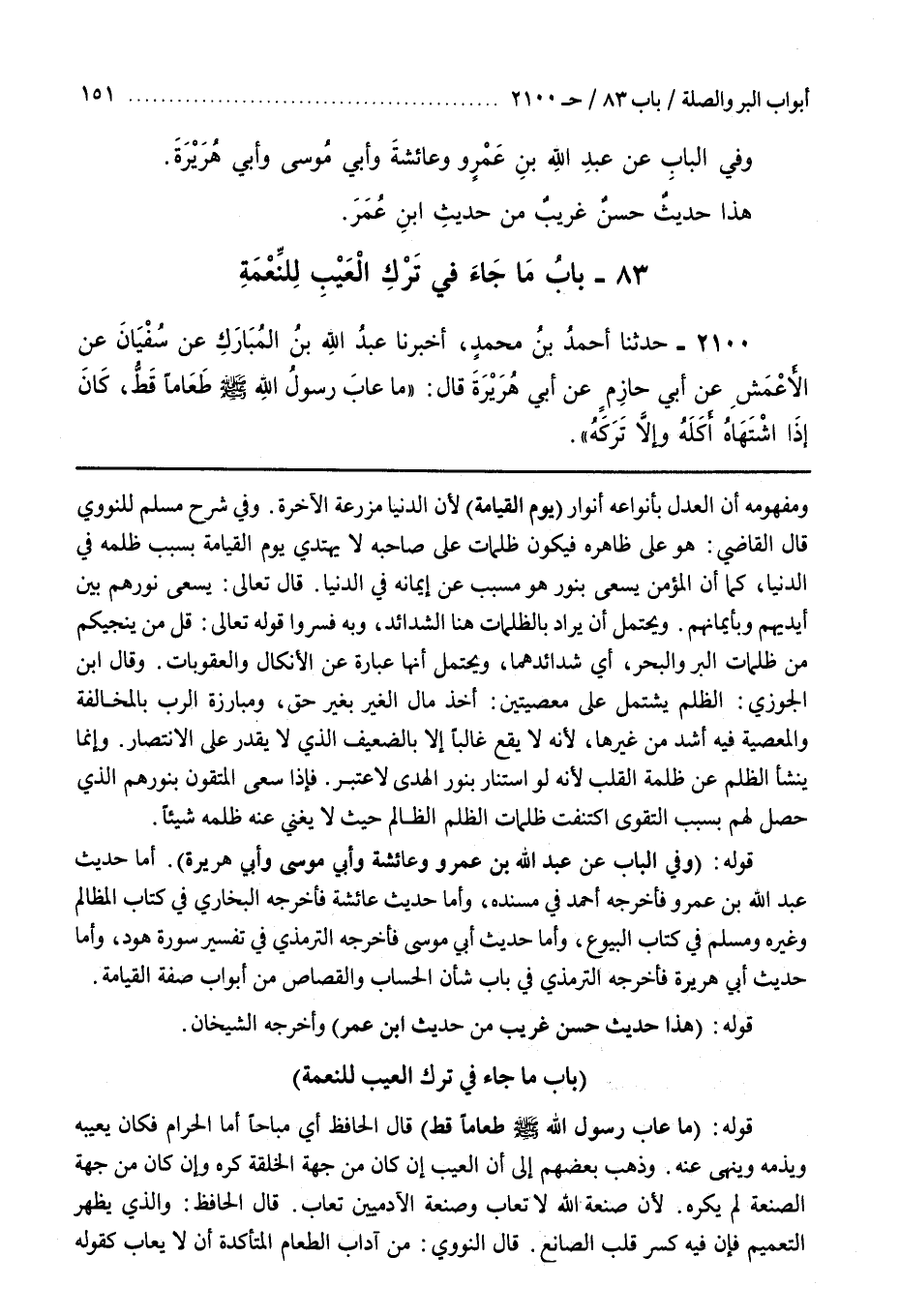 4 - (بَاب مَا جَاءَ فِي تَرْكِ الْعَيْبِ لِلنِّعْمَةِ)