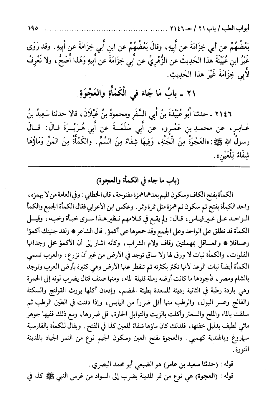 22 - (بَابُ مَا جَاءَ فِي الْكَمْأَةِ وَالْعَجْوَةِ)