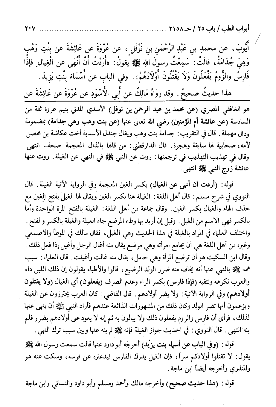 هُوَ الْغَافِقِيُّ الْمِصْرِيُّ (عَنْ مُحَمَّدِ بْنِ عَبْدِ الرَّحْمَنِ بْنِ نَوْفَلٍ) الأَسَدِيِّ الْمَدَنِيِّ يَتِيمُ عُرْوَةَ ثِقَةٌ مِنَ السَّادِسَةِ (عَنْ عَائِشَةَ) أُمِّ الْمُؤْمِنِينَ رَضِيَ اللَّهُ تَعَالَى عَنْهَا (عَنْ بِنْتِ وَهْبٍ وَهِيَ جُدَامَةُ) بِمَضْمُومَةٍ وَدَالٍ مُهْمَلَةٍ