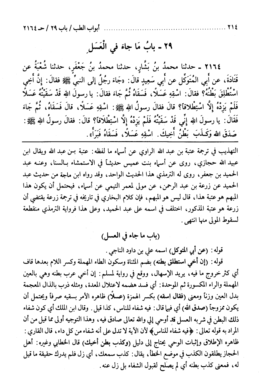 1 - (بَاب مَا جَاءَ فِي التَّدَاوِي بِالْعَسَلِ)