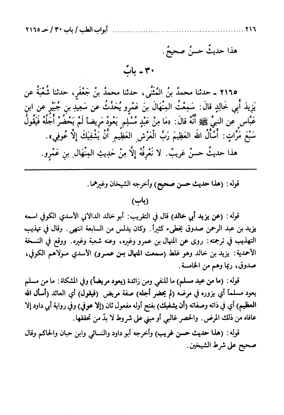 وَقَالَ فِي تَهْذِيبِ التَّهْذِيبِ فِي تَرْجَمَتِهِ رَوَى عن الْمِنْهَالِ بْنِ عَمْرٍو وَغَيْرِهِ وَعَنْهُ شُعْبَةُ وَغَيْرُهُ وَوَقَعَ فِي النُّسْخَةِ الْأَحْمَدِيَّةِ يَزِيدُ بْنُ خَالِدٍ وَهُوَ غَلَطٌ (سَمِعْتُ الْمِنْهَالَ بْنَ عَمْرٍو) الْأَسَدِيَّ مَوْلَاهُمُ الْكُوفِيُّ صَدُوقٌ رُبَّمَا وَهِمَ مِنَ الْخَامِسَةِ
