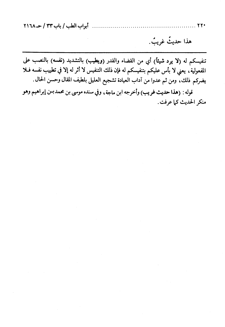 قوله (هذا حديث غريب) وأخرجه بن مَاجَهْ وَفِي سَنَدِهِ مُوسَى بْنُ مُحَمَّدِ بْنِ إبراهيم وهو منكر الحديث كما عرفت