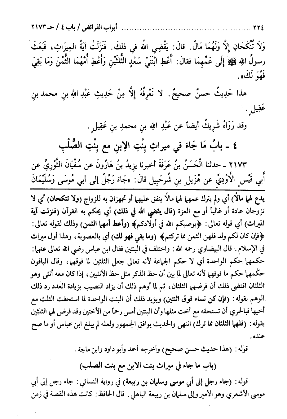 (بَاب مَا جَاءَ فِي مِيرَاثِ ابْنَةِ الِابْنِ مَعَ ابْنَةِ الصُّلْبِ)