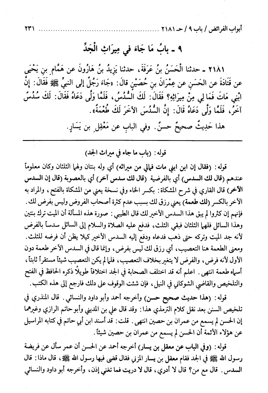 9 - (بَاب مَا جَاءَ فِي مِيرَاثِ الْجَدِّ)
